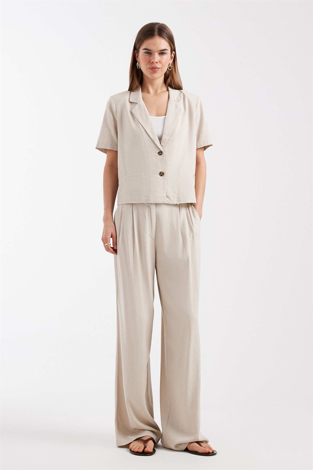 Брюки с широкими брючинами из ткани с эффектом льна co-ord