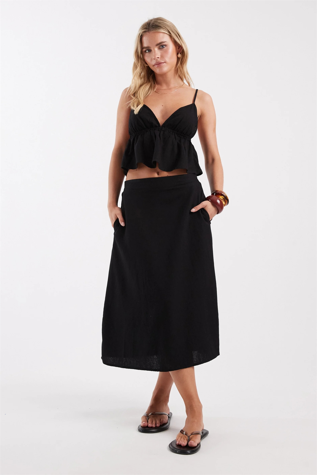 Юбка средней длины с эффектом льна co-ord