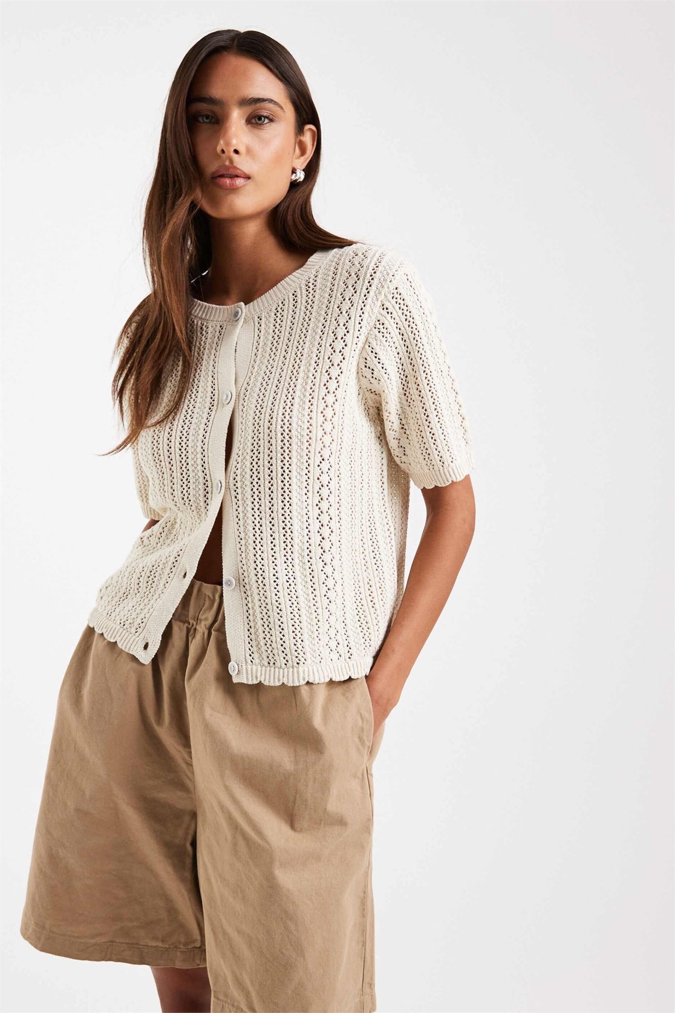 Кардиган с коротким рукавом из трикотажа с узором «поинтел»