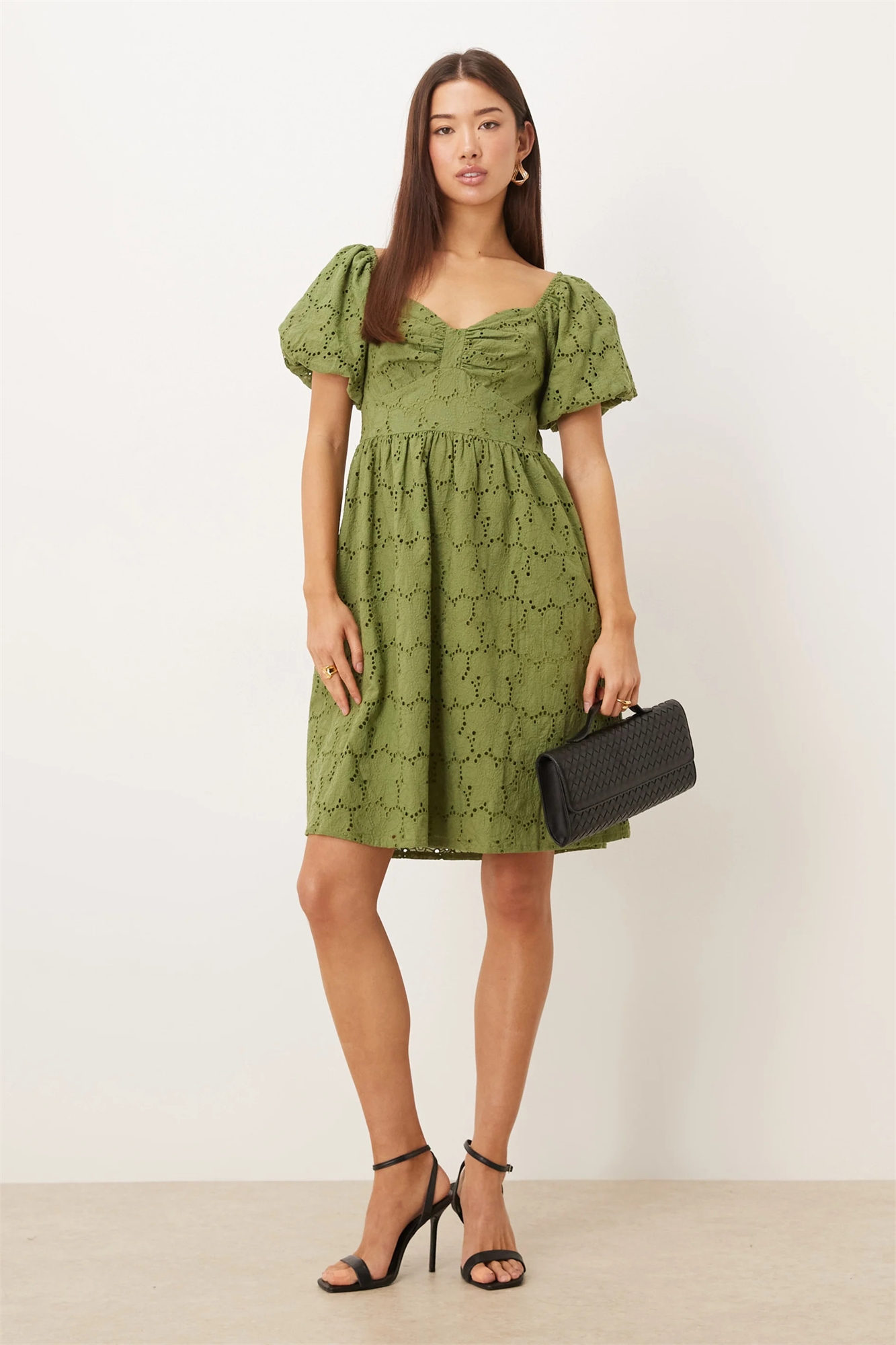 Мини-платье с короткими рукавами, вырезом «сердце» и бантиком