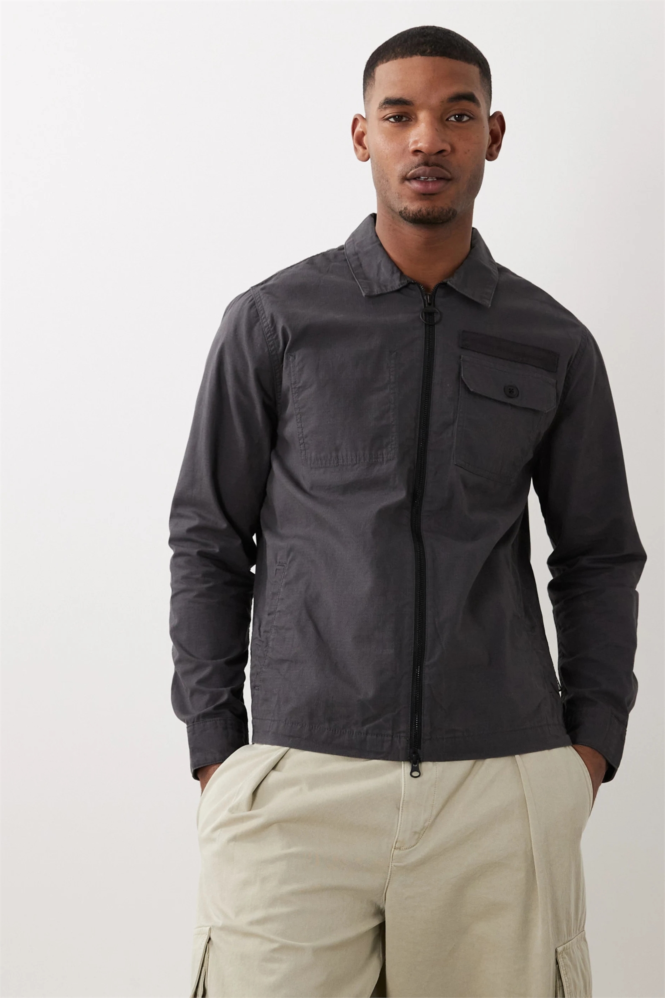 Рубашка-оверсайз из рипстопа с восковым покрытием и молнией по всей длине