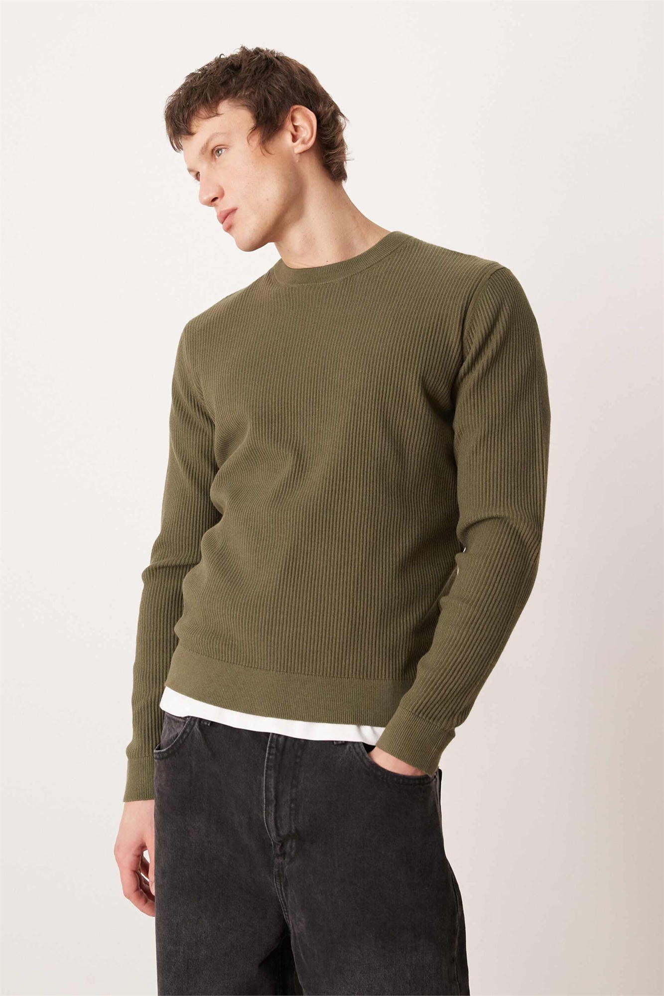 Свитер с круглым вырезом из смешанной хлопковой ткани
