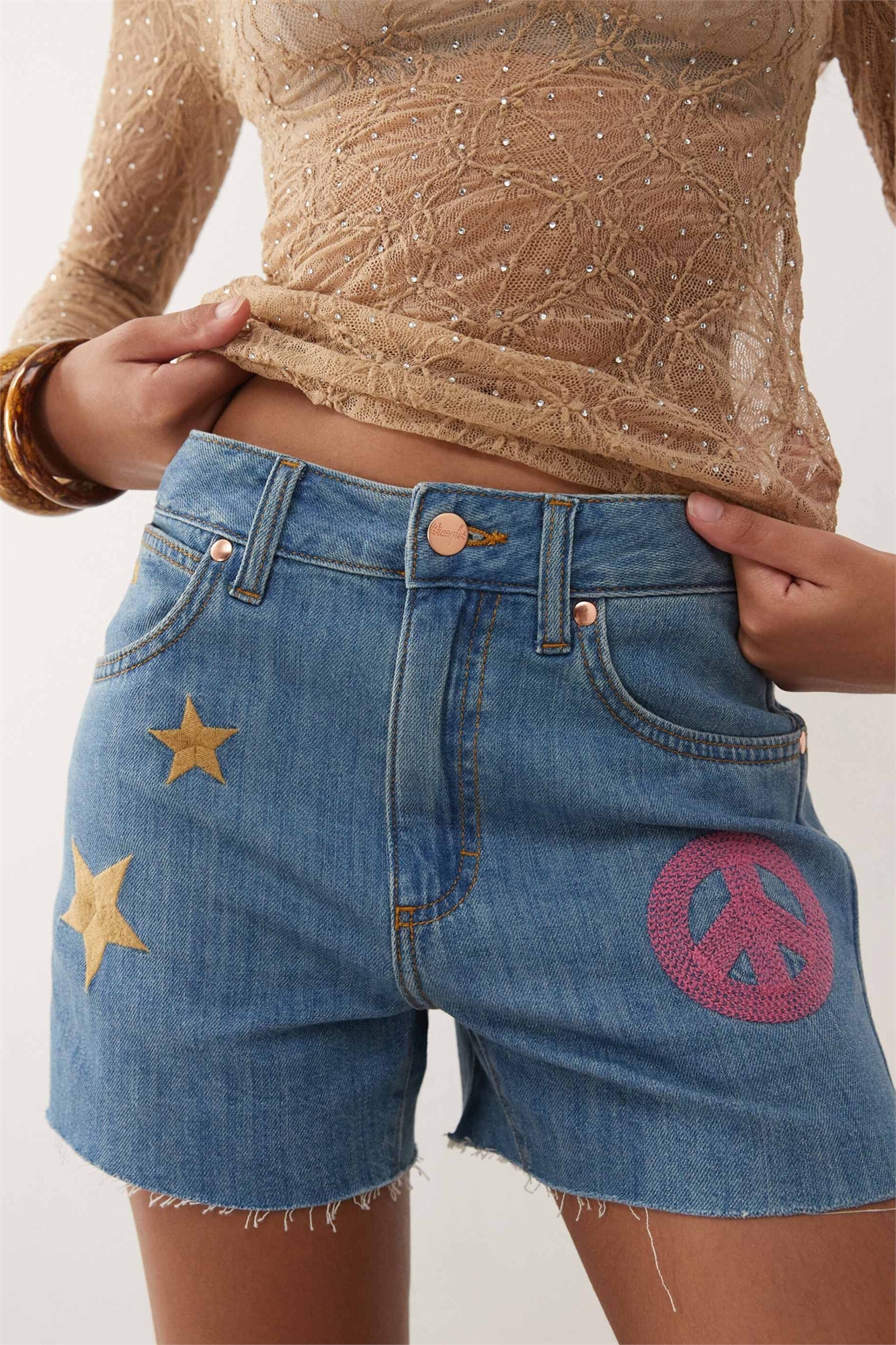 X Шорты из джинсовой ткани с вышивкой от Lainey Wilson