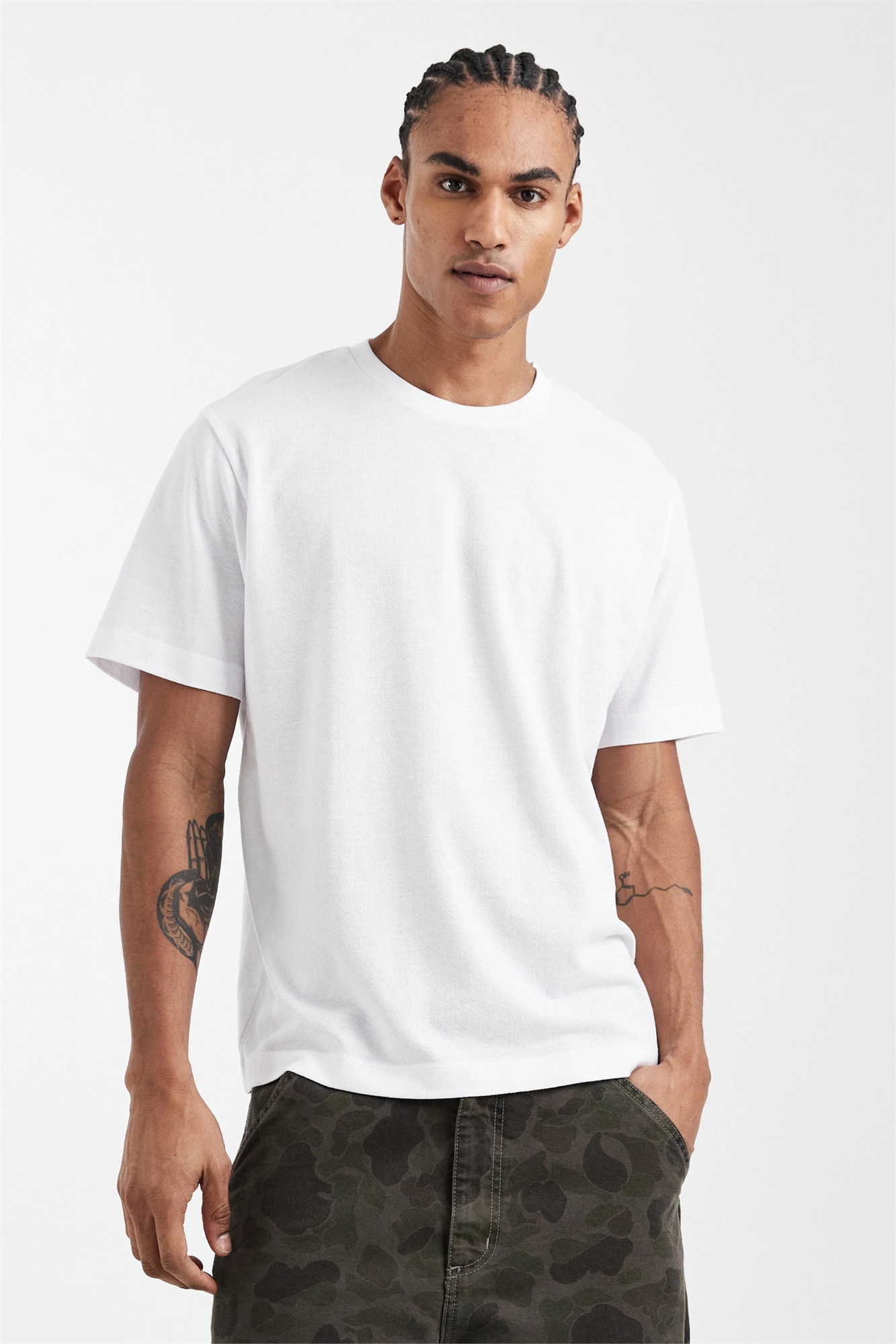 Рост модели: 188 см / 6 футов 2 дюйма. На модели одета одежда размера L — обхват груди 104 см.