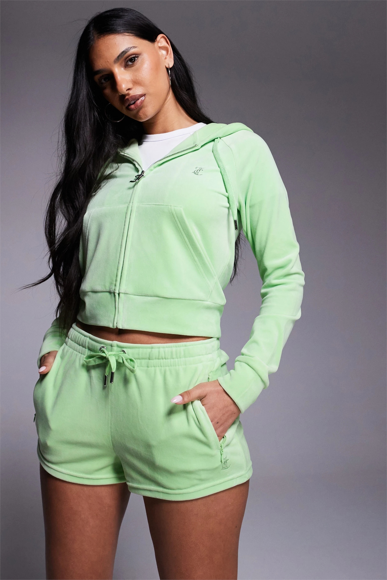 Шорты с завязками на талии и логотипом из велюра со стразами co-ord