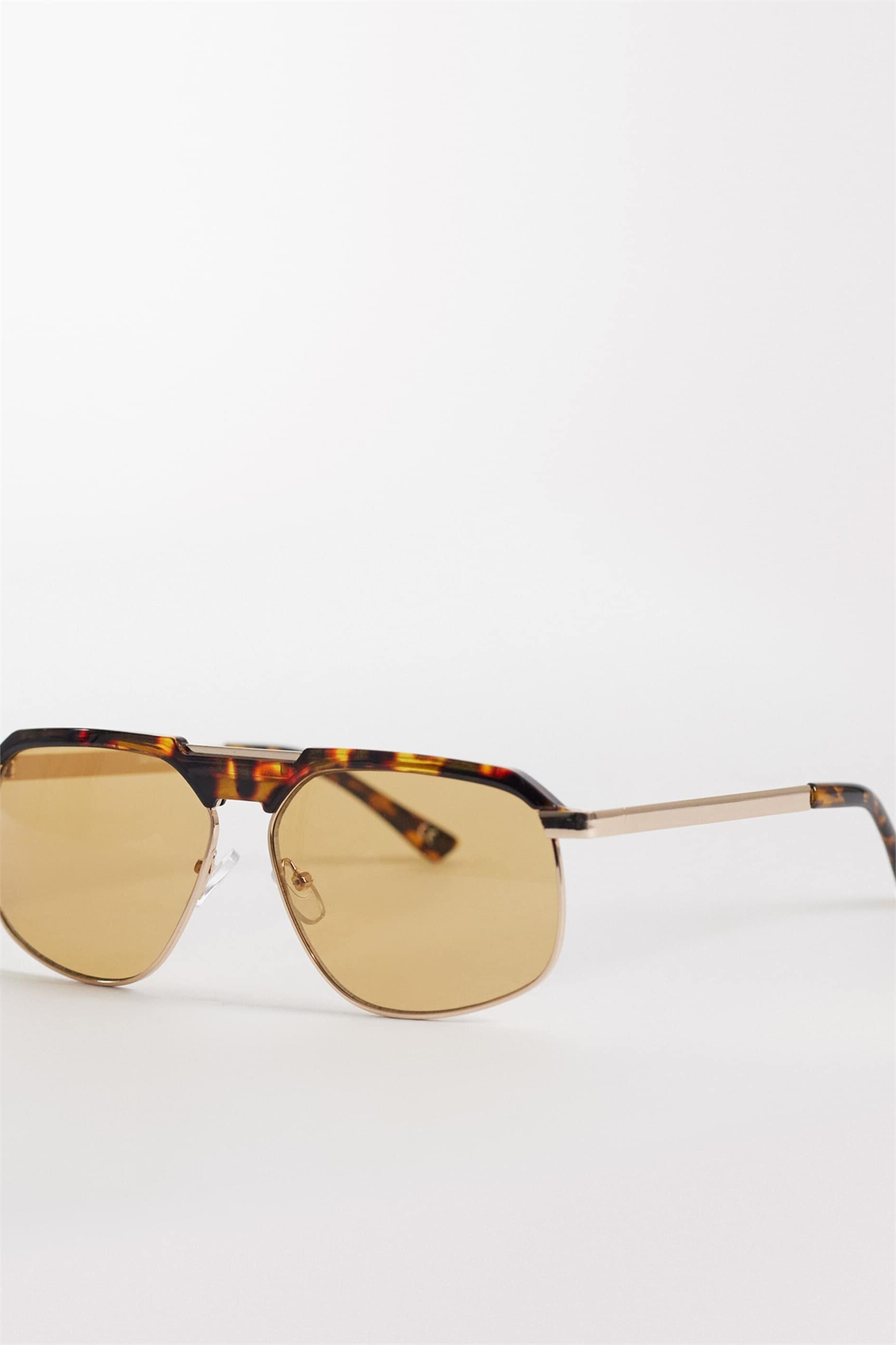 Очки в стиле «авиатор» с металлической оправой и узором «черепаха» и желтыми стеклами