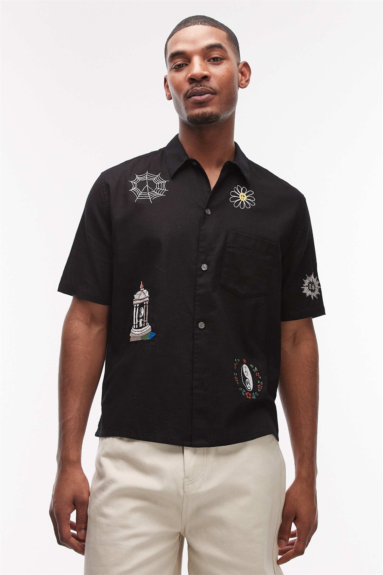 Рубашка с короткими рукавами из смешанного льна с вышивкой от Karlton