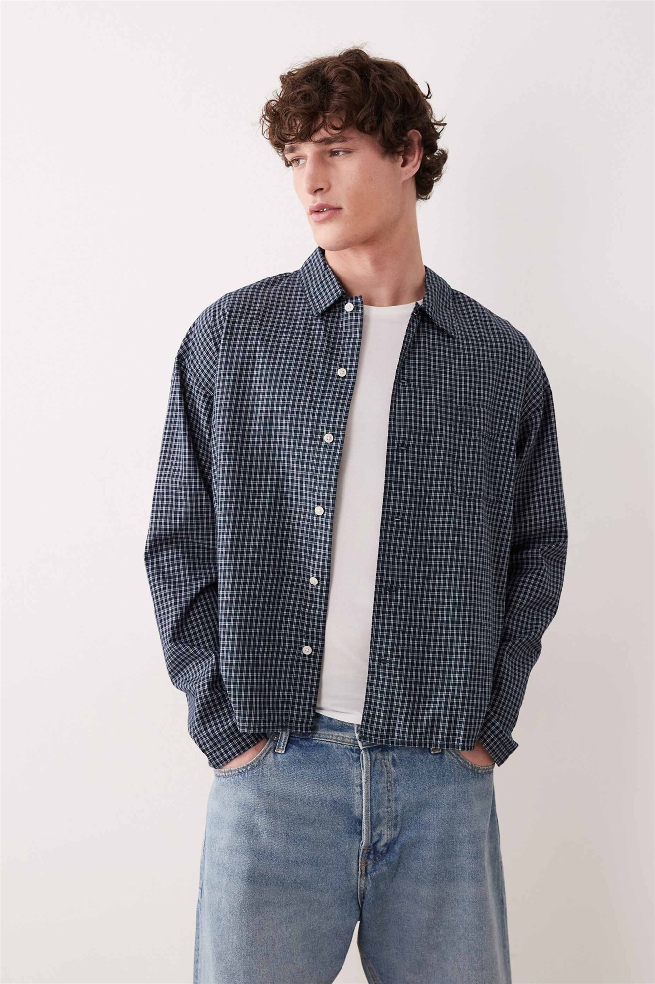 Рубашка свободного кроя прямого покроя серо-синего цвета