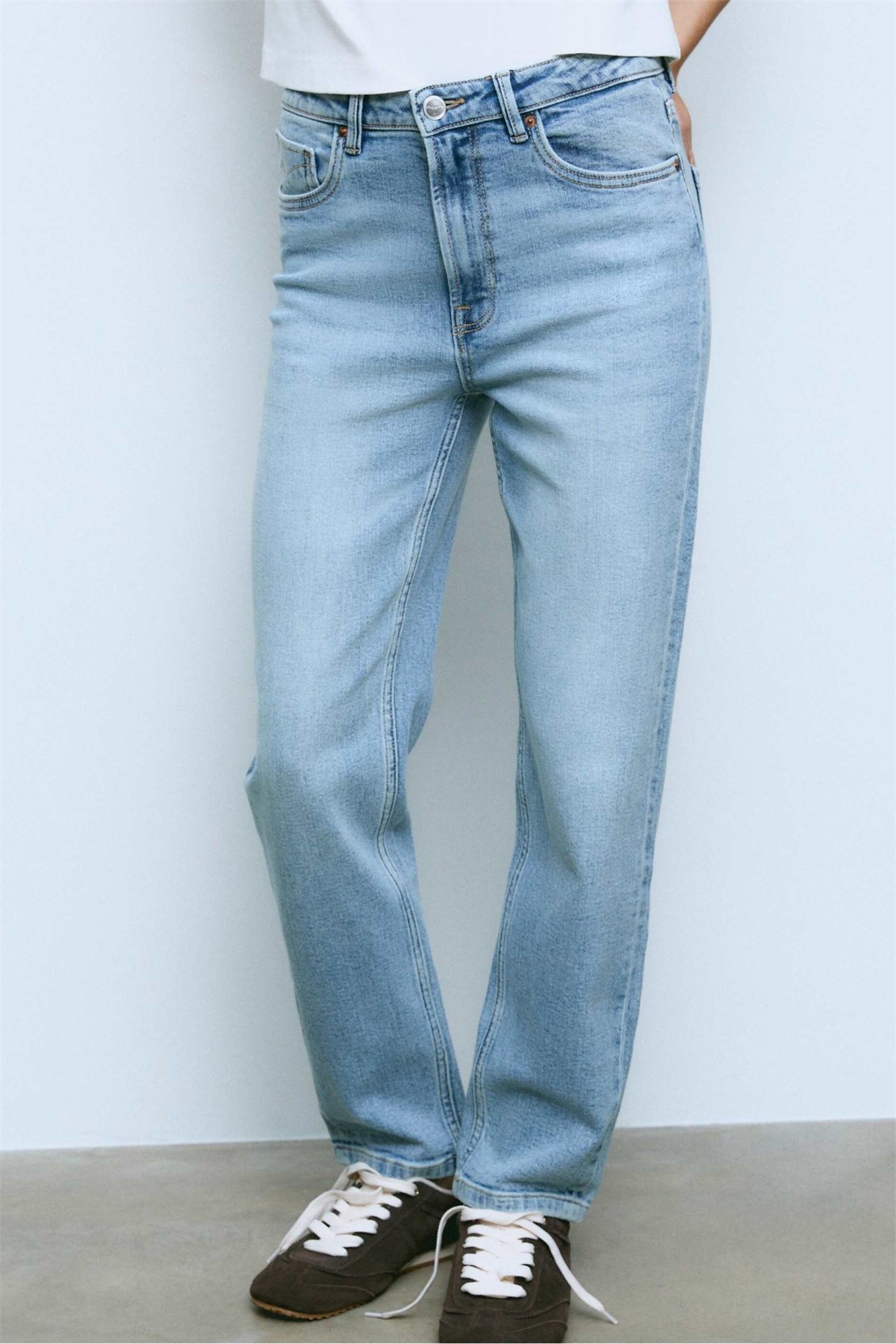 Джинсовая ткань без эластана: светло-голубой оттенок. Основной состав: 98% хлопок, 2% эластан.
