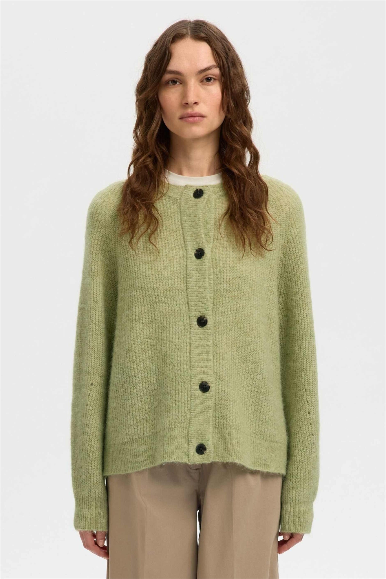 Средней плотности трикотаж Основной состав: 39% шерсть, 24% полиэстер, 20% альпака, 15% нейлон, 2% эластан.