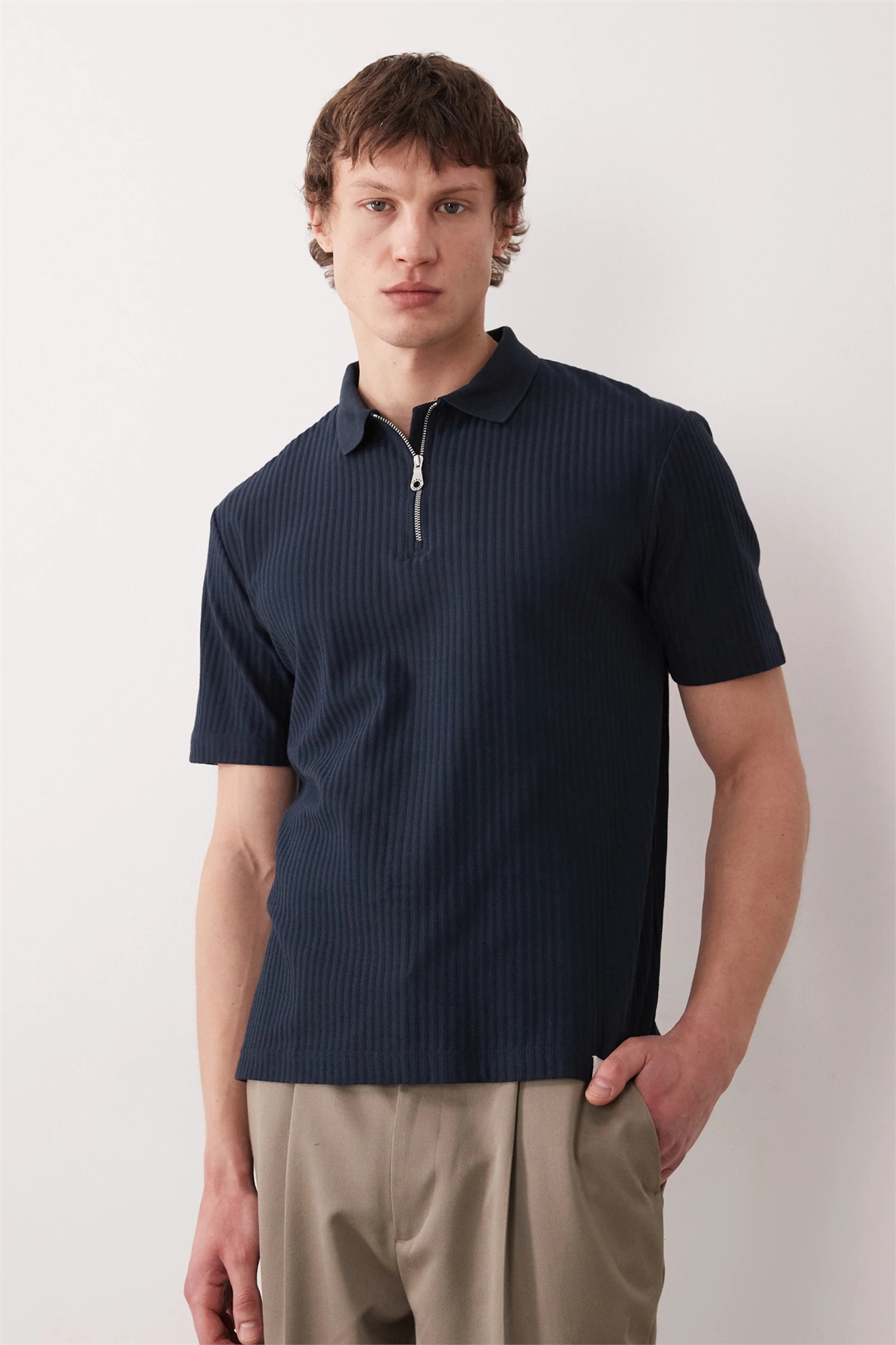 Поло с логотипом Dobson с короткими рукавами и четвертью молнии