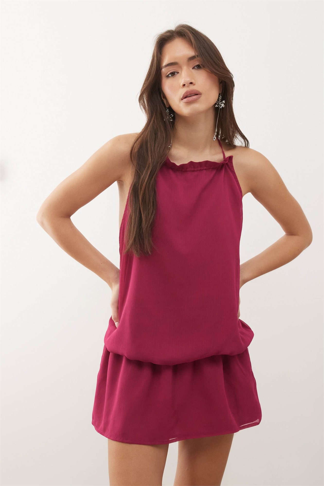Платье Veloria с высоким воротником, завязками на шее и заниженной талией
