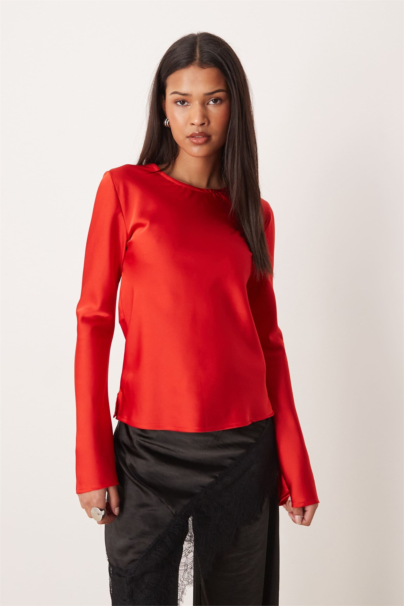 Топ из атласа с открытой спиной и завязками на шее