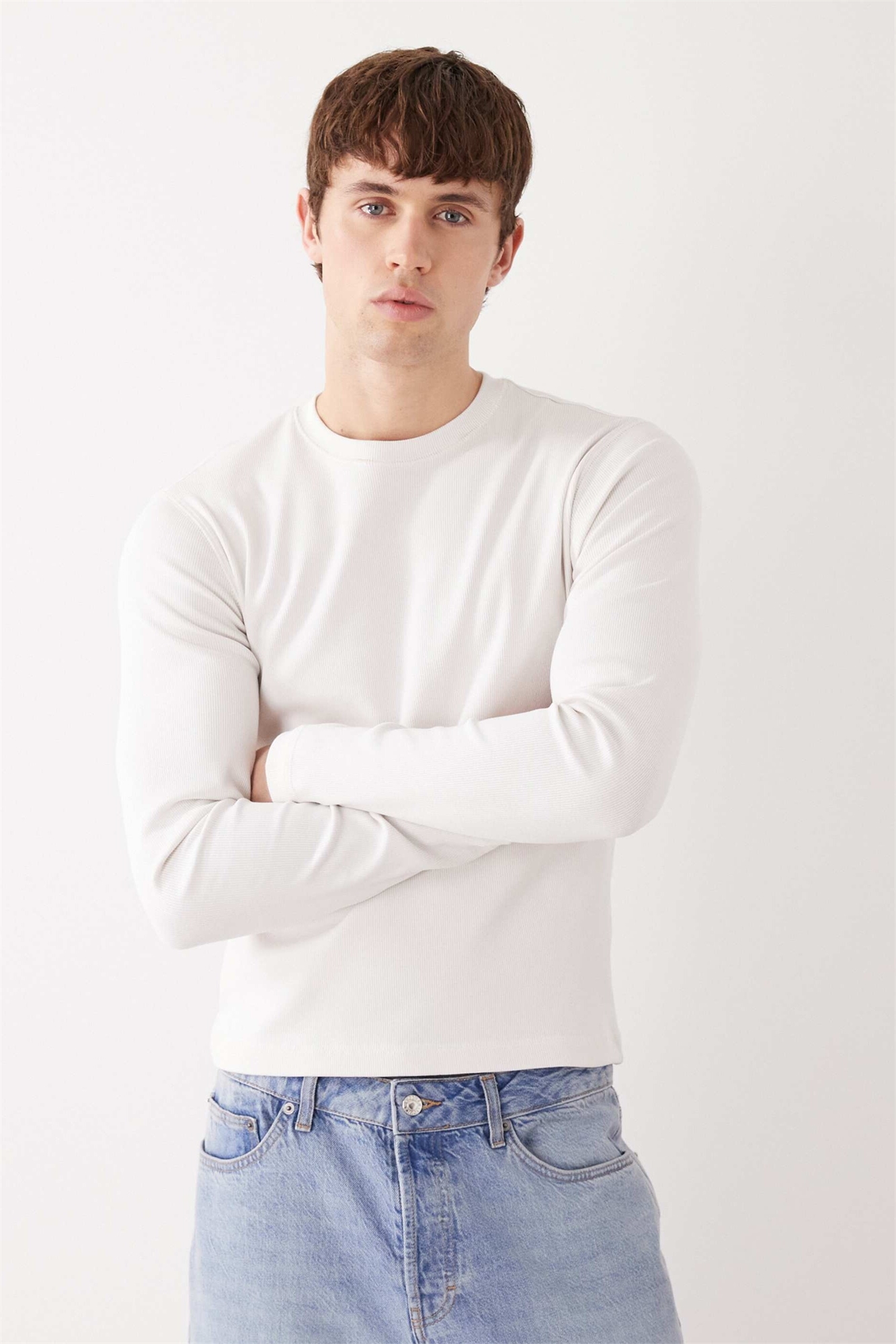 Футболка с длинным рукавом и ребристой отделкой, приталенного кроя