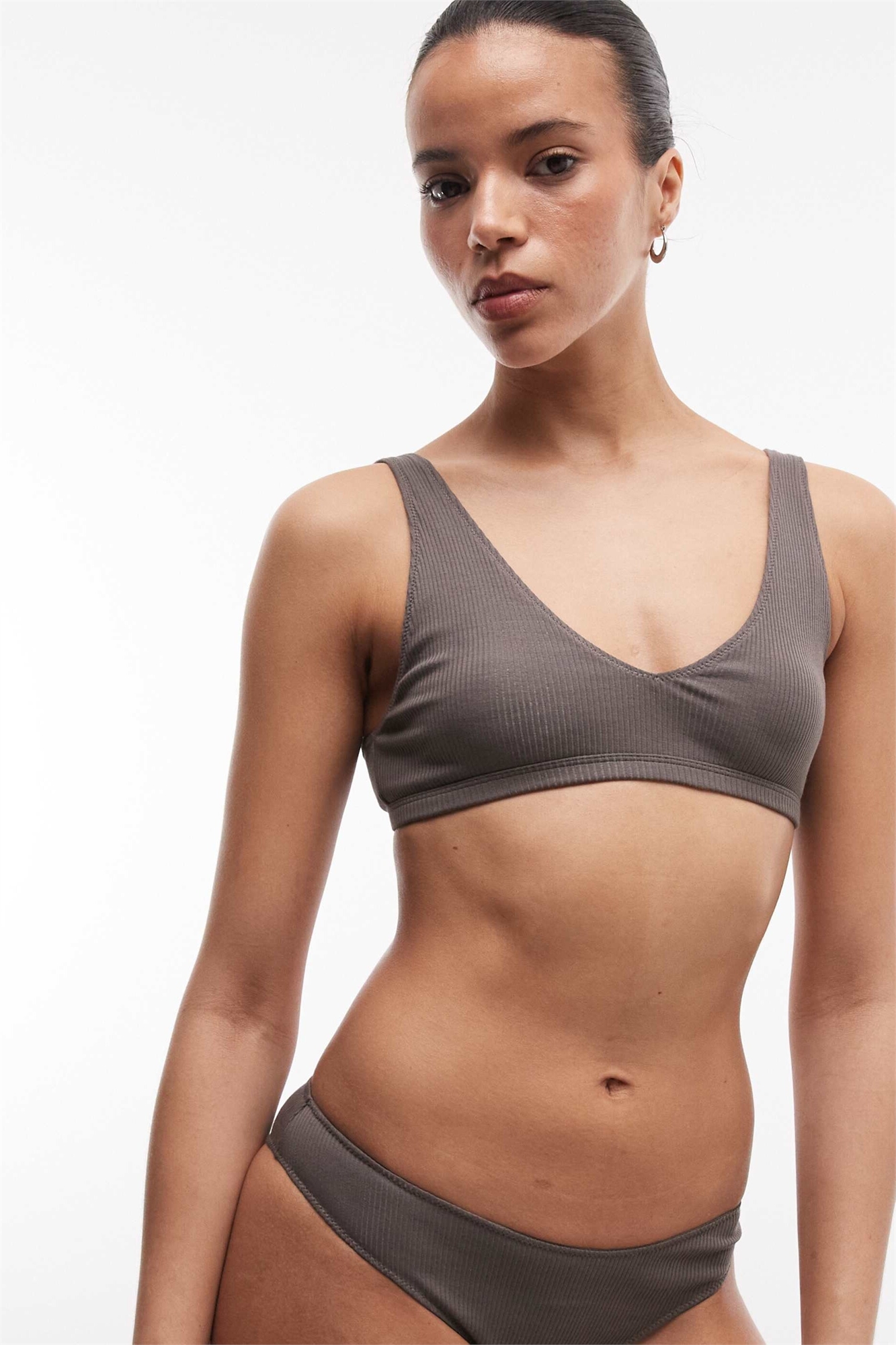 Бюстгальтер с глубоким вырезом и лаконичным ребристым узором: комбинируйте по своему вкусу