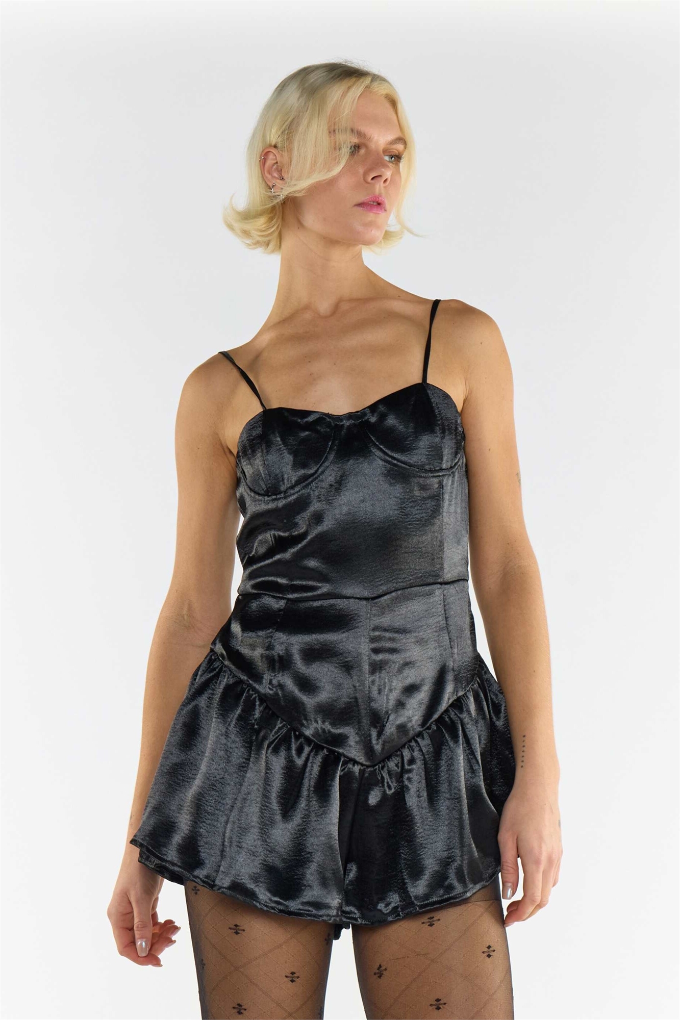 Ткань атласного типа: блестящая, драпируемая и шелковисто-гладкая Основной материал: 100% полиэстер, подкладка: 100% полиэстер.
