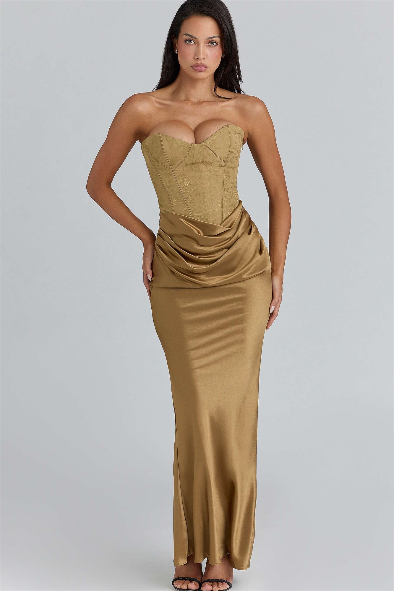 Макси-платье-корсет из атласа с бронзовым тиснением от Aurelia