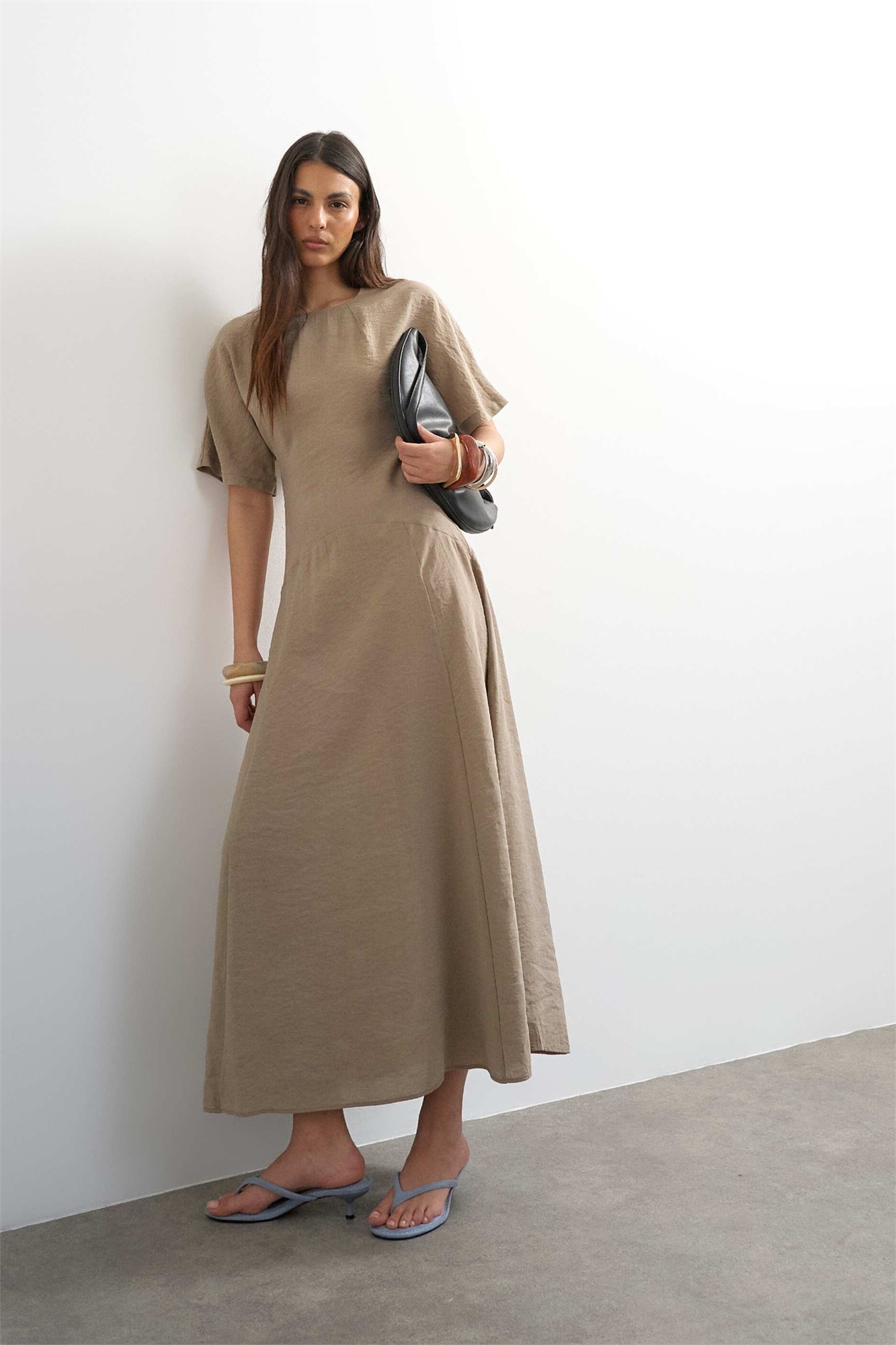 Макси-платье-футболка с заниженной талией из купро