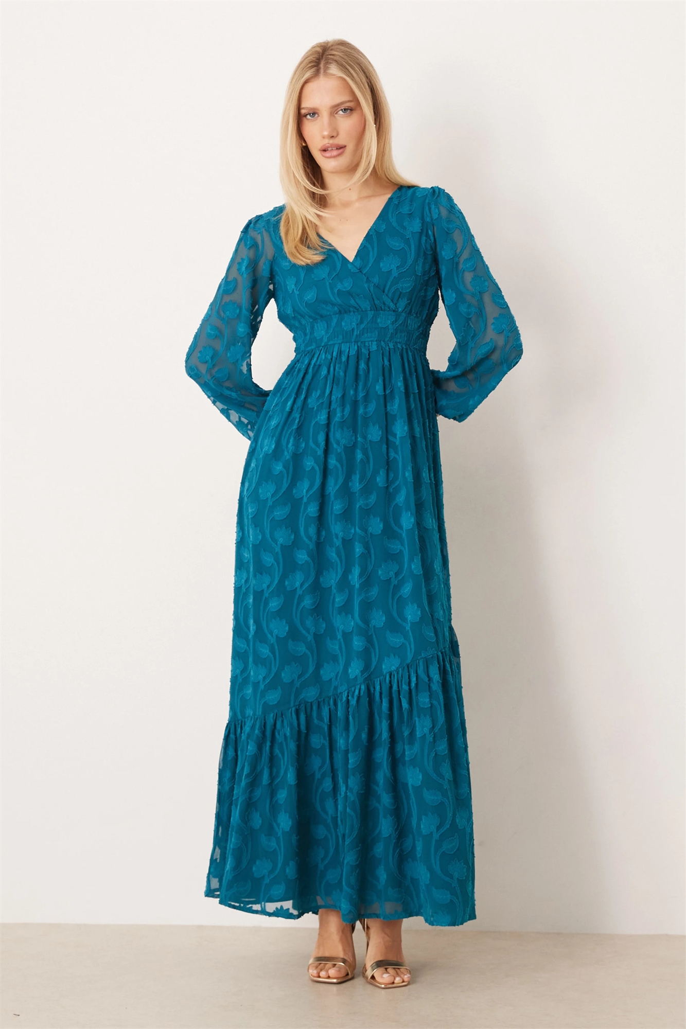 Макси-платье с цветочным узором в технике «берн-аут», асимметричным разрезом по подолу и завязками на спине