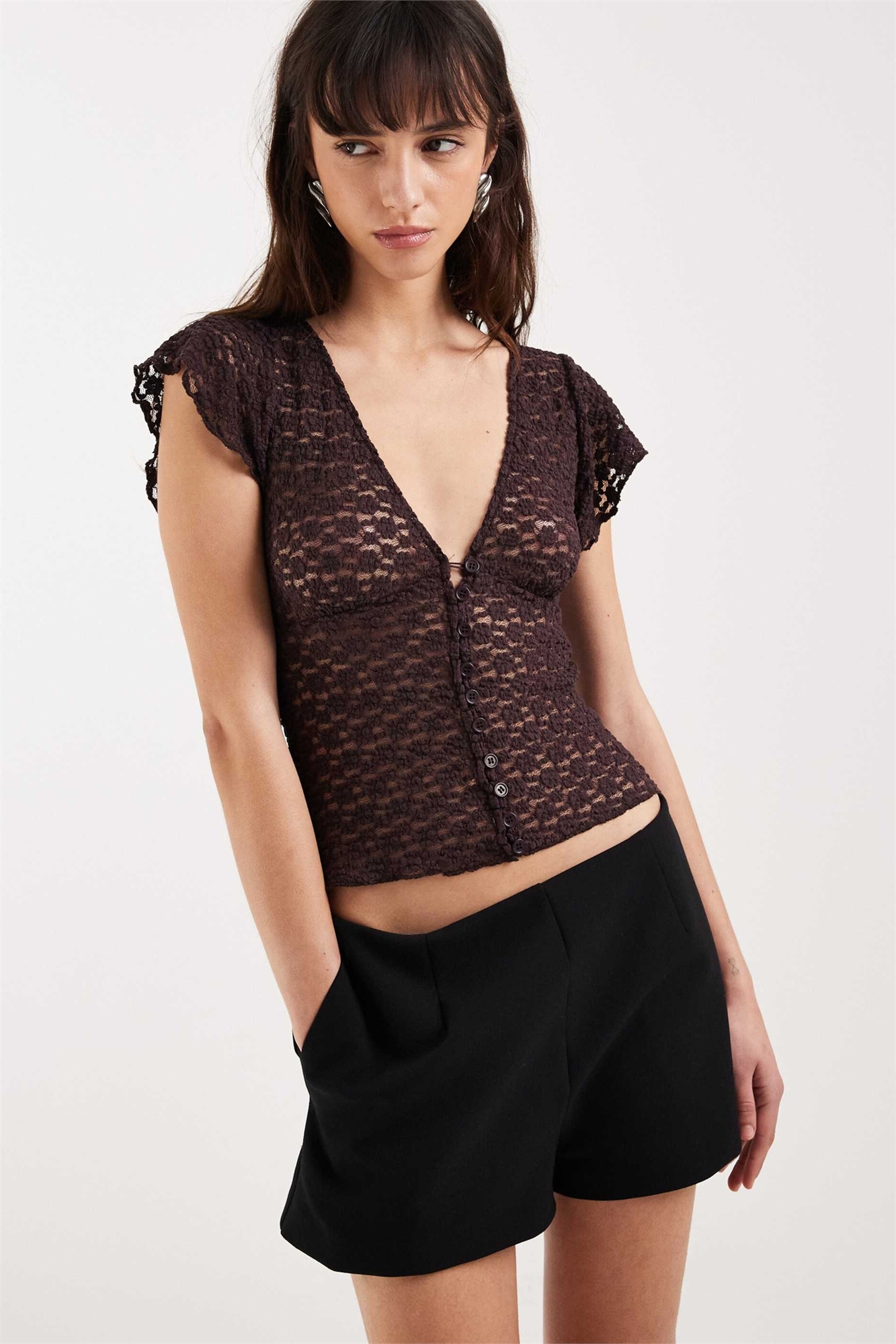 Топ с V-образным вырезом и застежкой на пуговицах из кружева от Yeslin