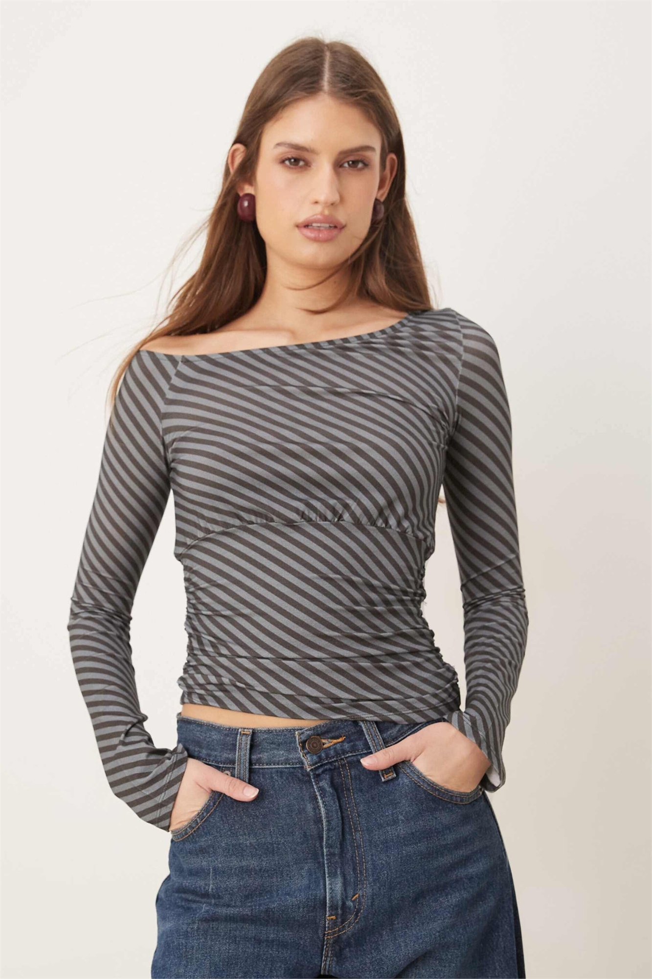 Топ с открытыми плечами и длинными рукавами в полоску от Hoang