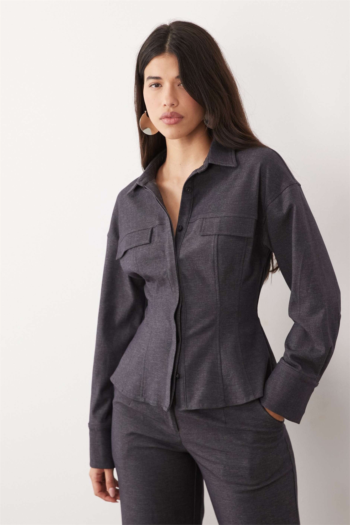 Эксклюзивная рубашка из эластичной ткани с зауженной талией и акцентными швами co-ord