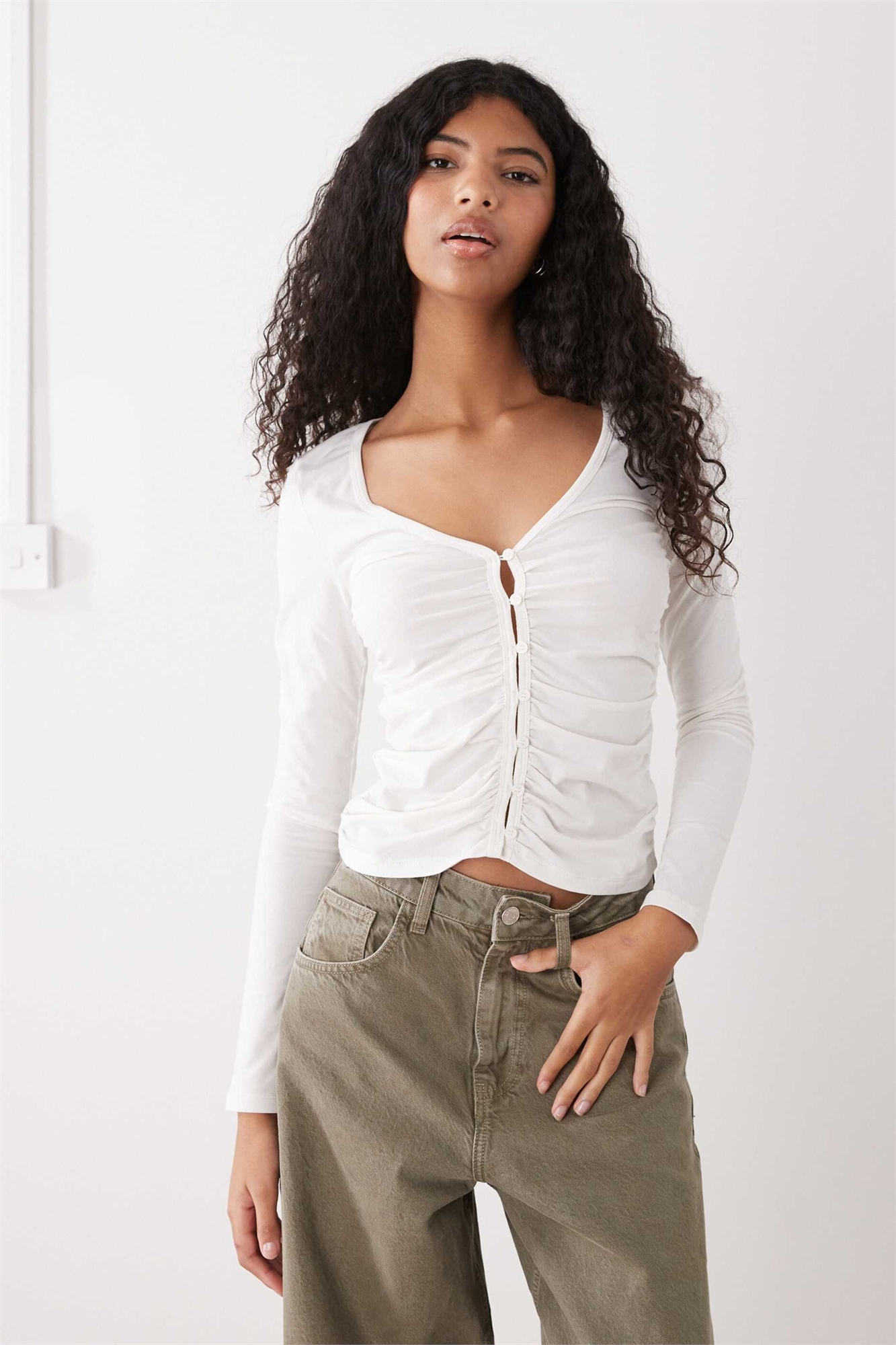 Топ из трикотажа с рюшами и застежкой на пуговицы