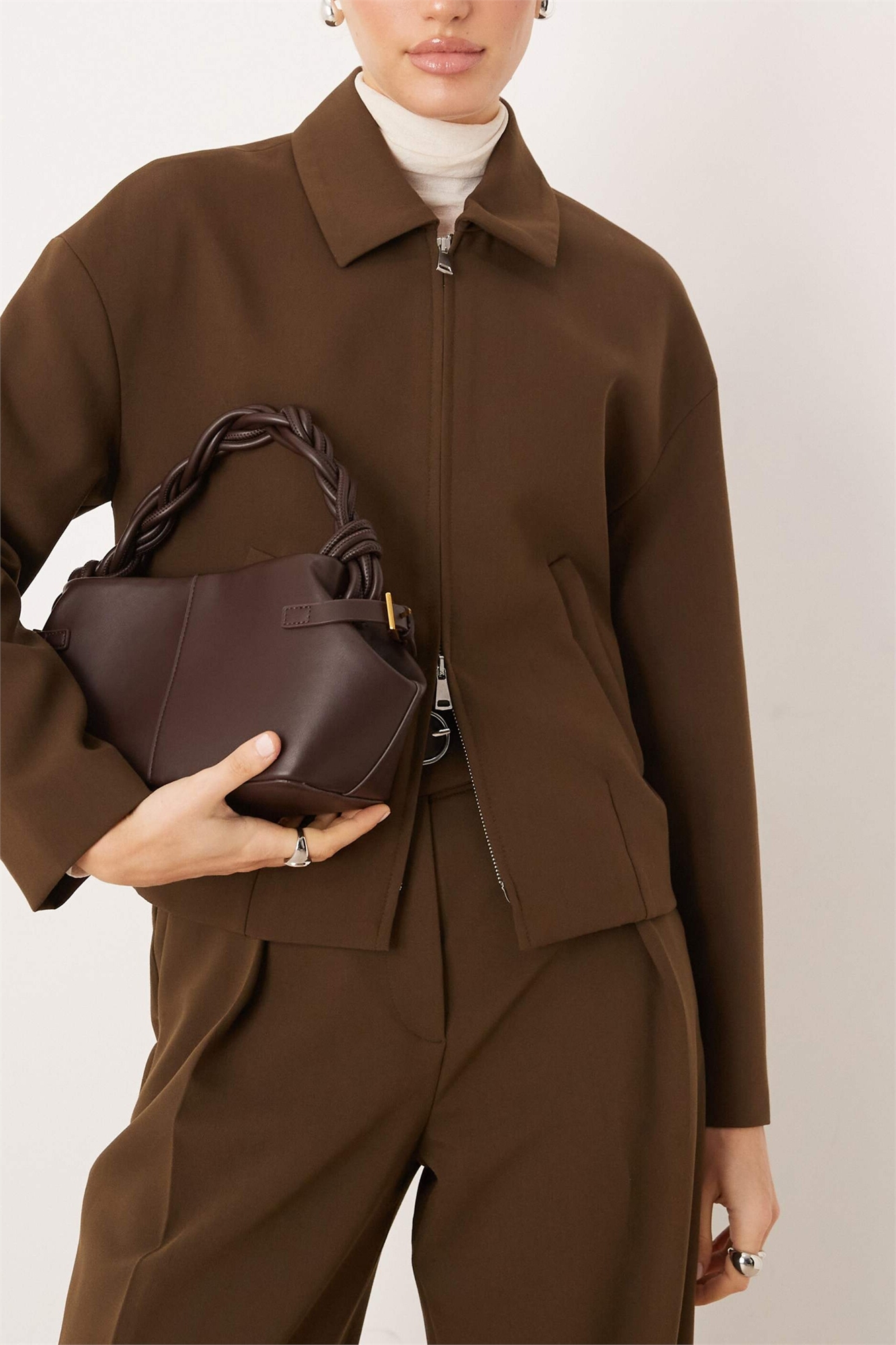 Сумка через плечо с плетеной ручкой в верхней части шоколадно-коричневого цвета