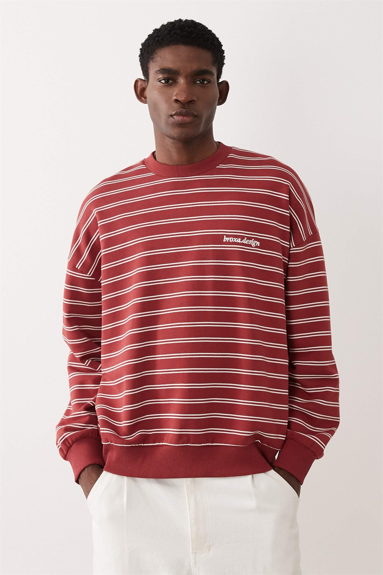 Свитшот с широкими полосками и вышивкой