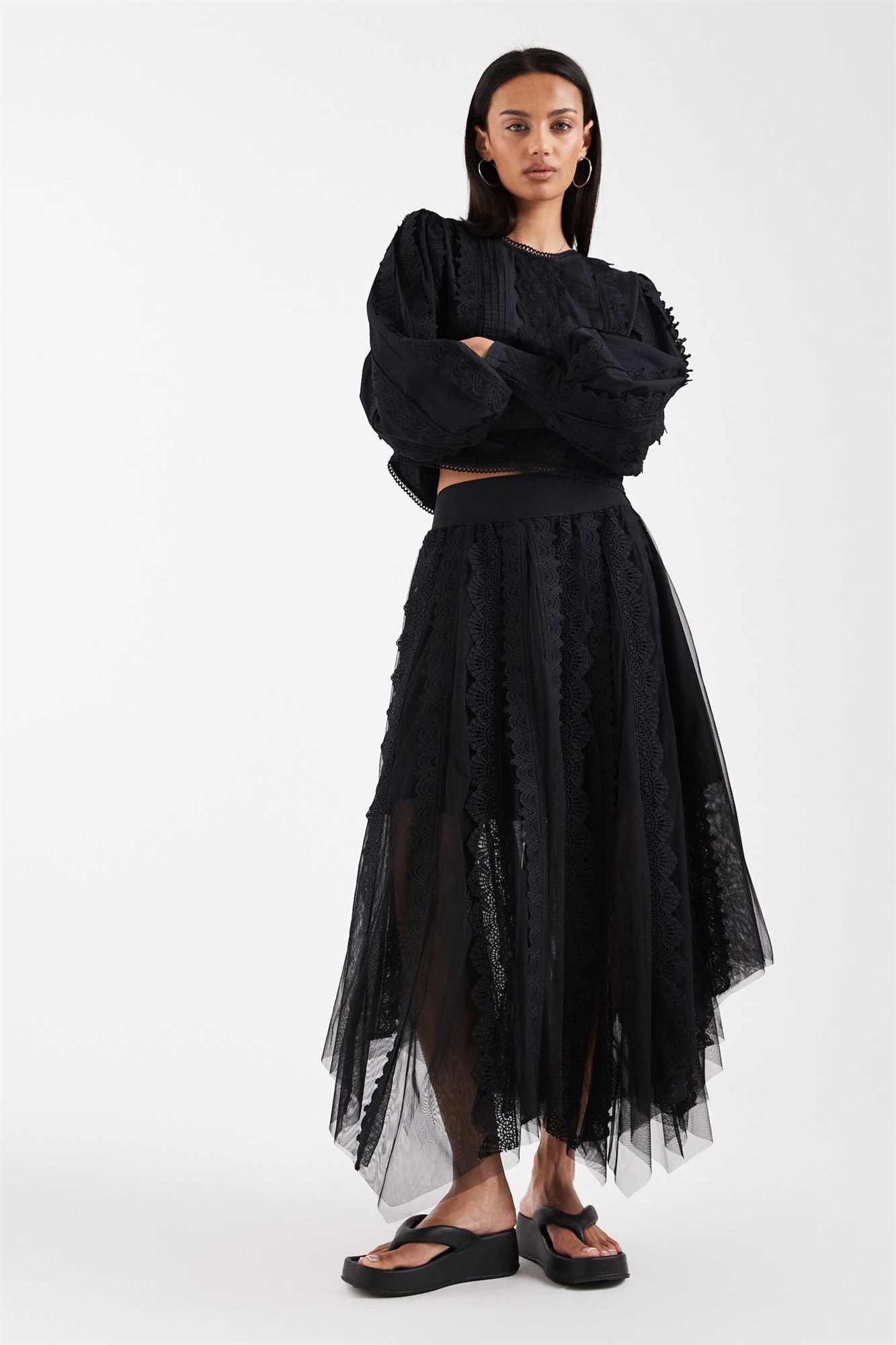 Асимметричная юбка средней длины с оборками из тюля от Vashtie