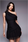 Эксклюзивное мини-платье из шифона с открытыми плечами, асимметричным подолом и сборками