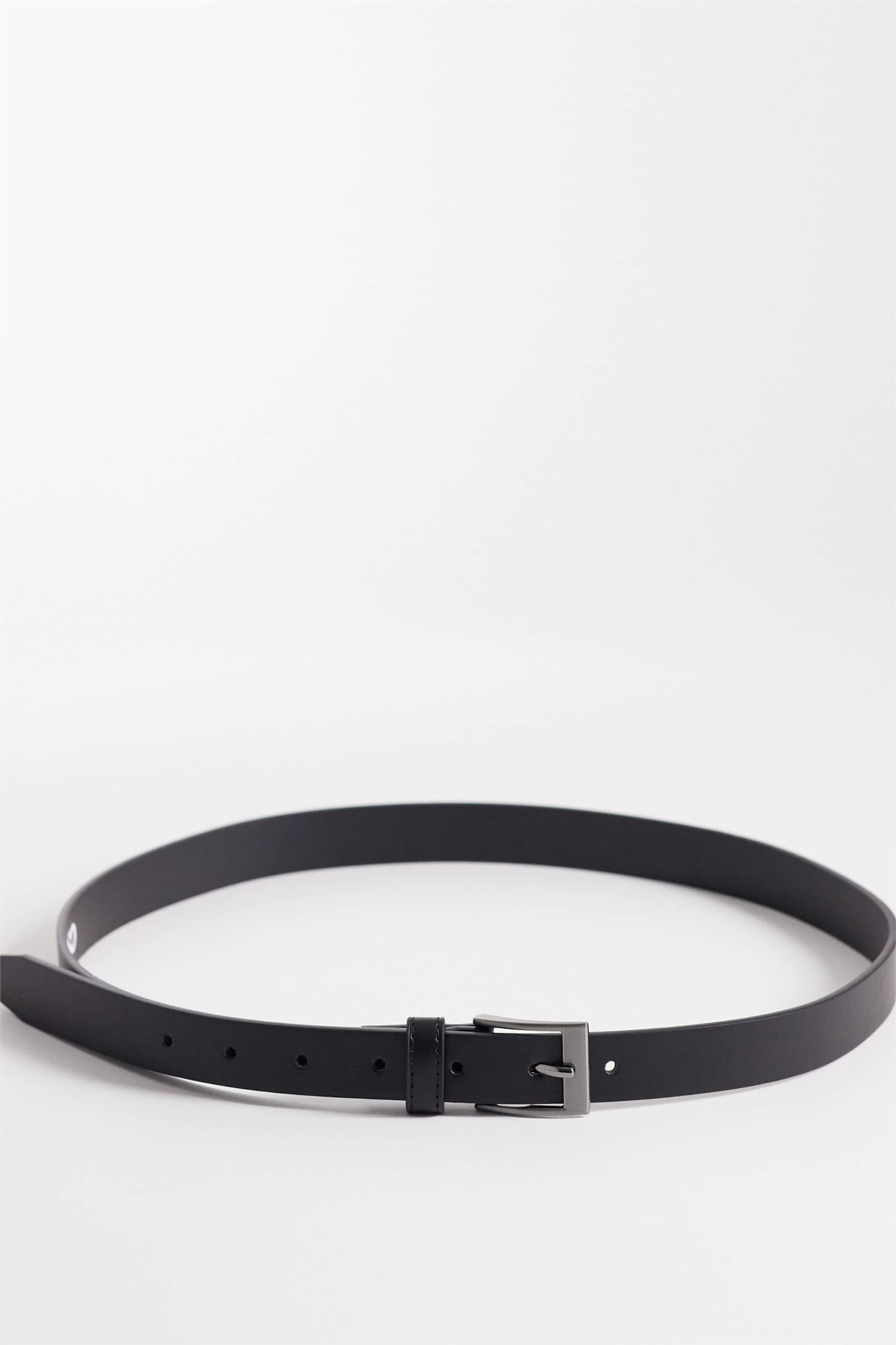 Узкий ремень из искусственной кожи с пряжкой цвета «пушечного металла»