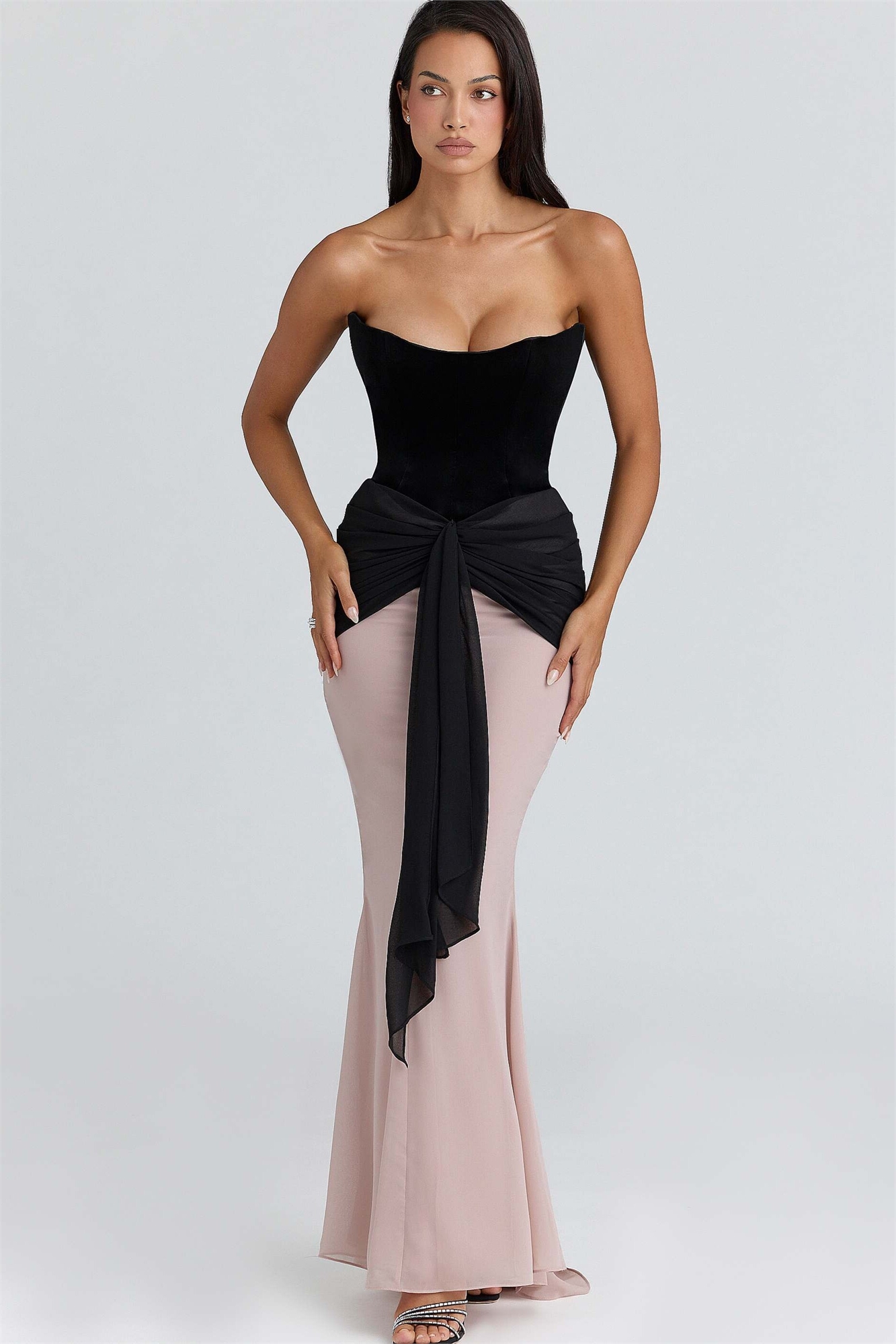 Макси-платье Clara из шифона черного и розового цветов — ограниченная серия