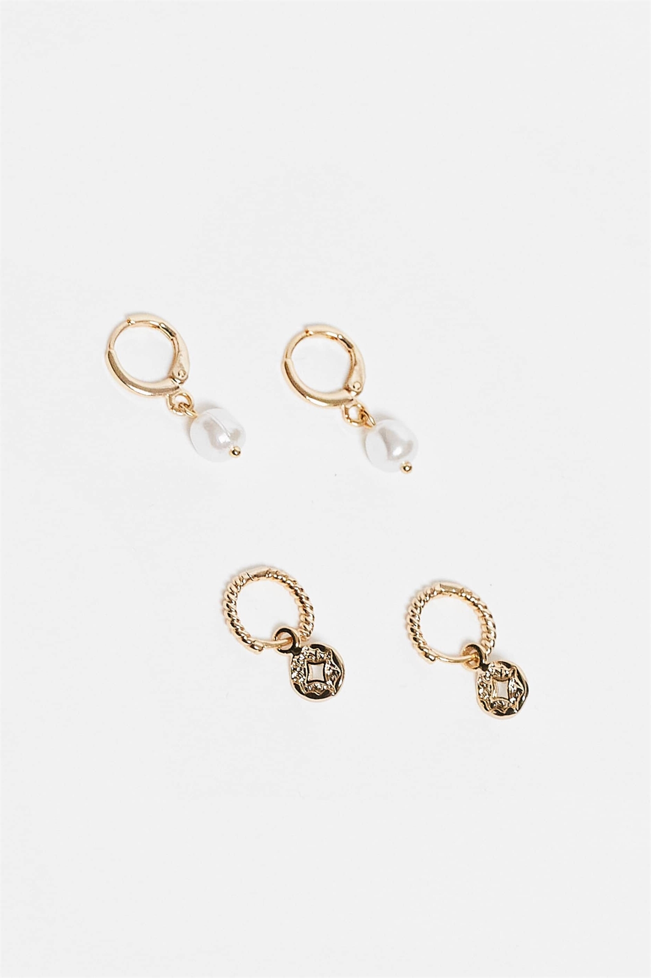 Набор из 2 сережек-колец с монетой Z и жемчужиной