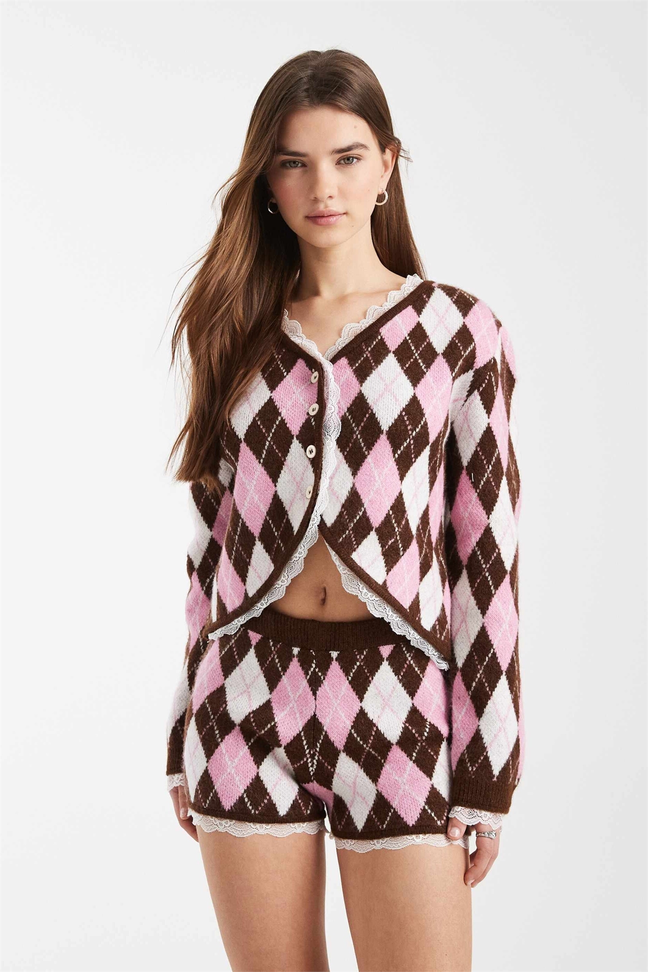 Шорты-боти с ажурной отделкой из трикотажа с ромбовидным узором co-ord