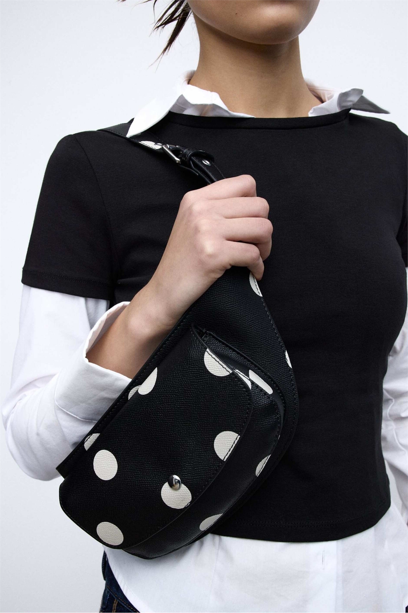 Пояс с плечевыми лямками в горошек, черный