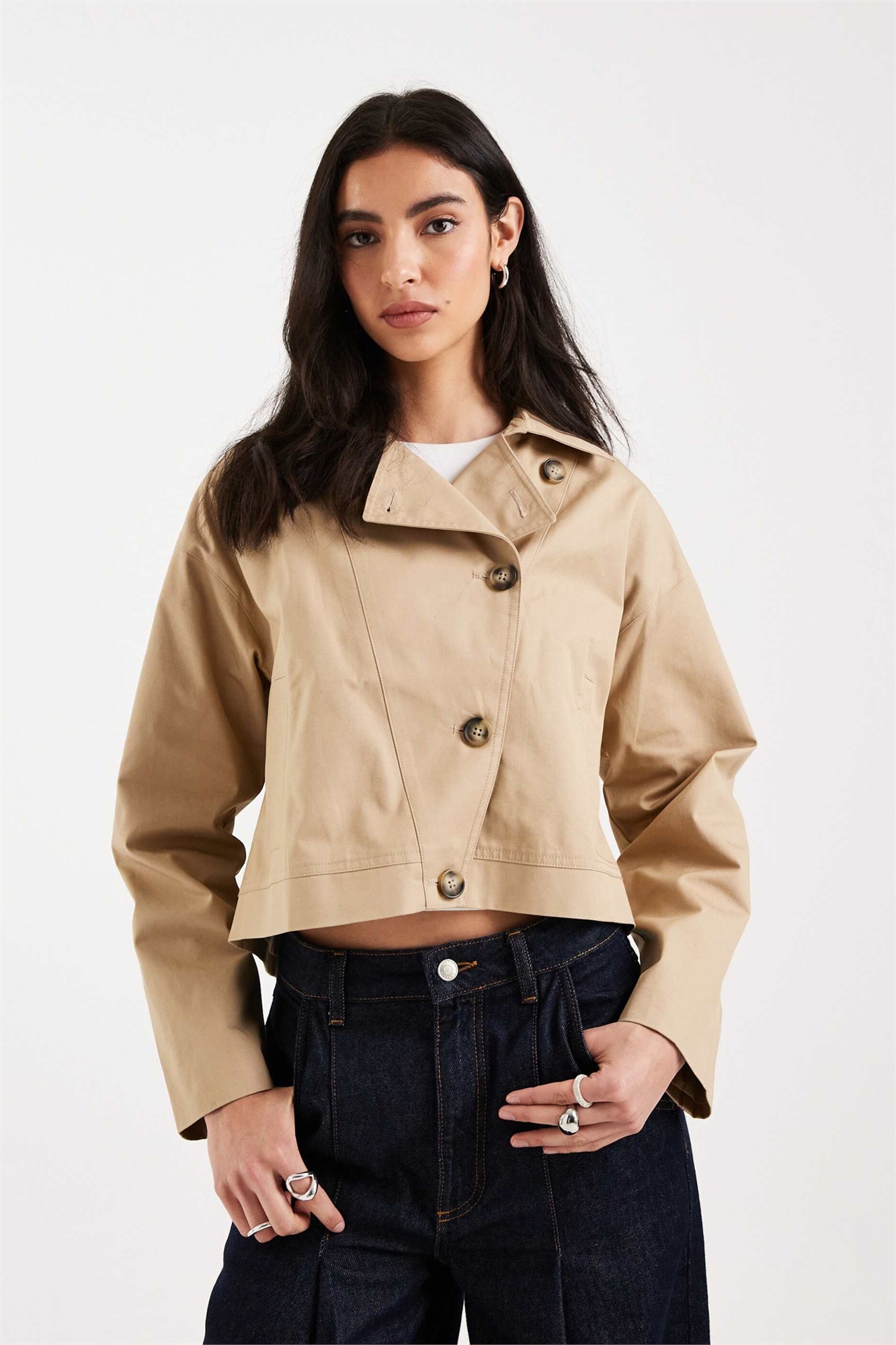 Подростковый асимметричный короткий тренч из 100% хлопка