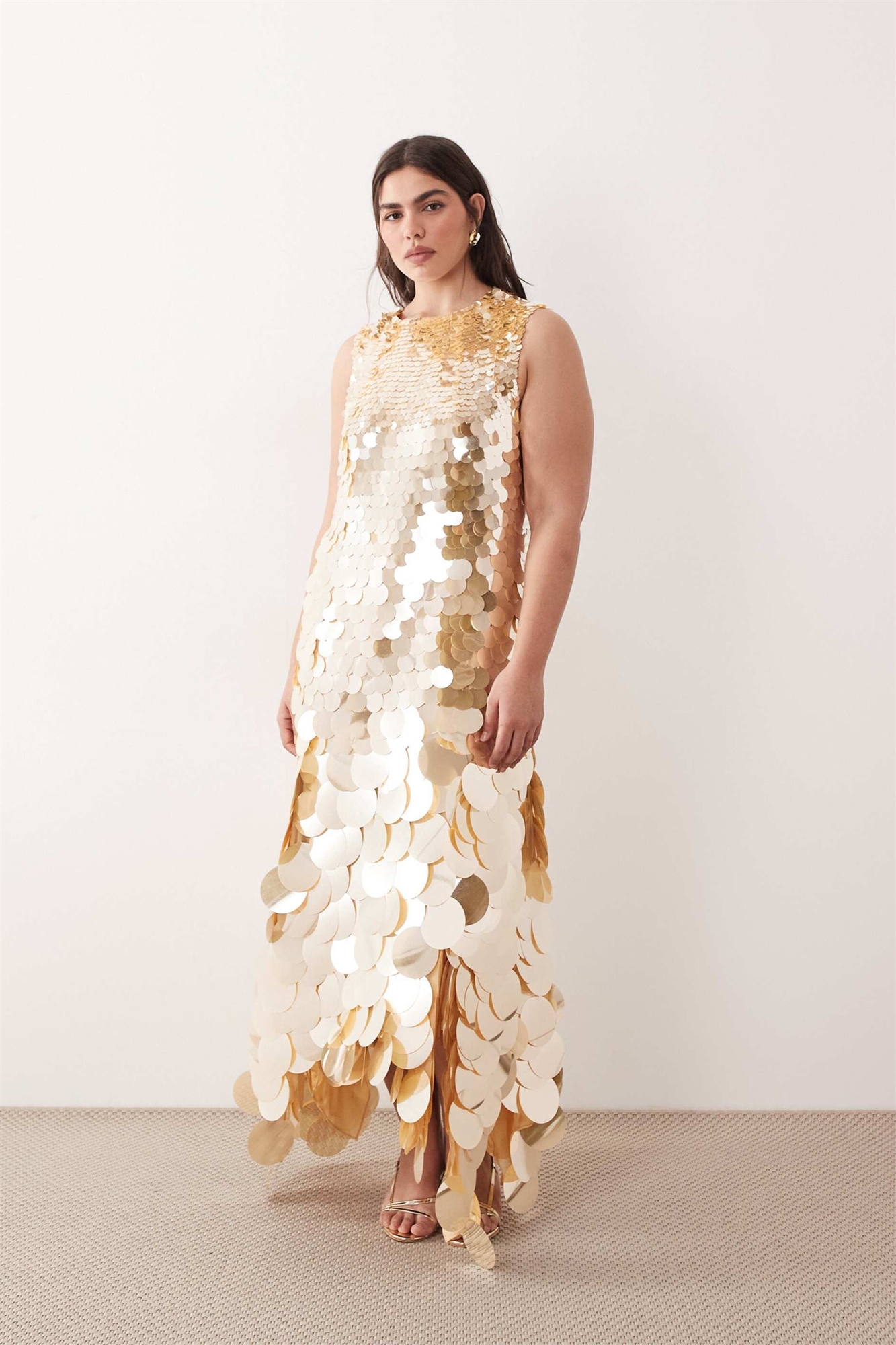 Макси-платье с высоким воротником, украшенное пайетками
