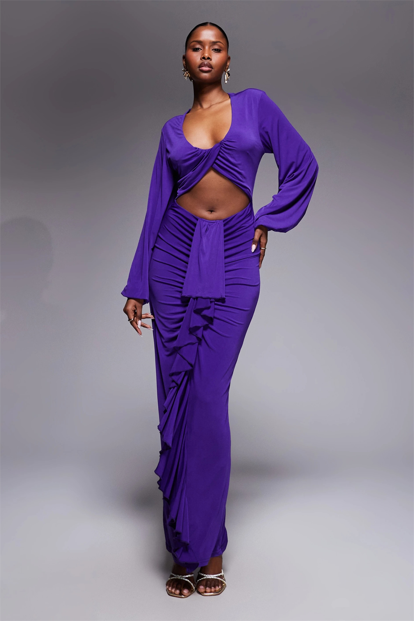 Платье макси с драпировкой на талии и вырезами на рукавах в стиле «Chat balloon»