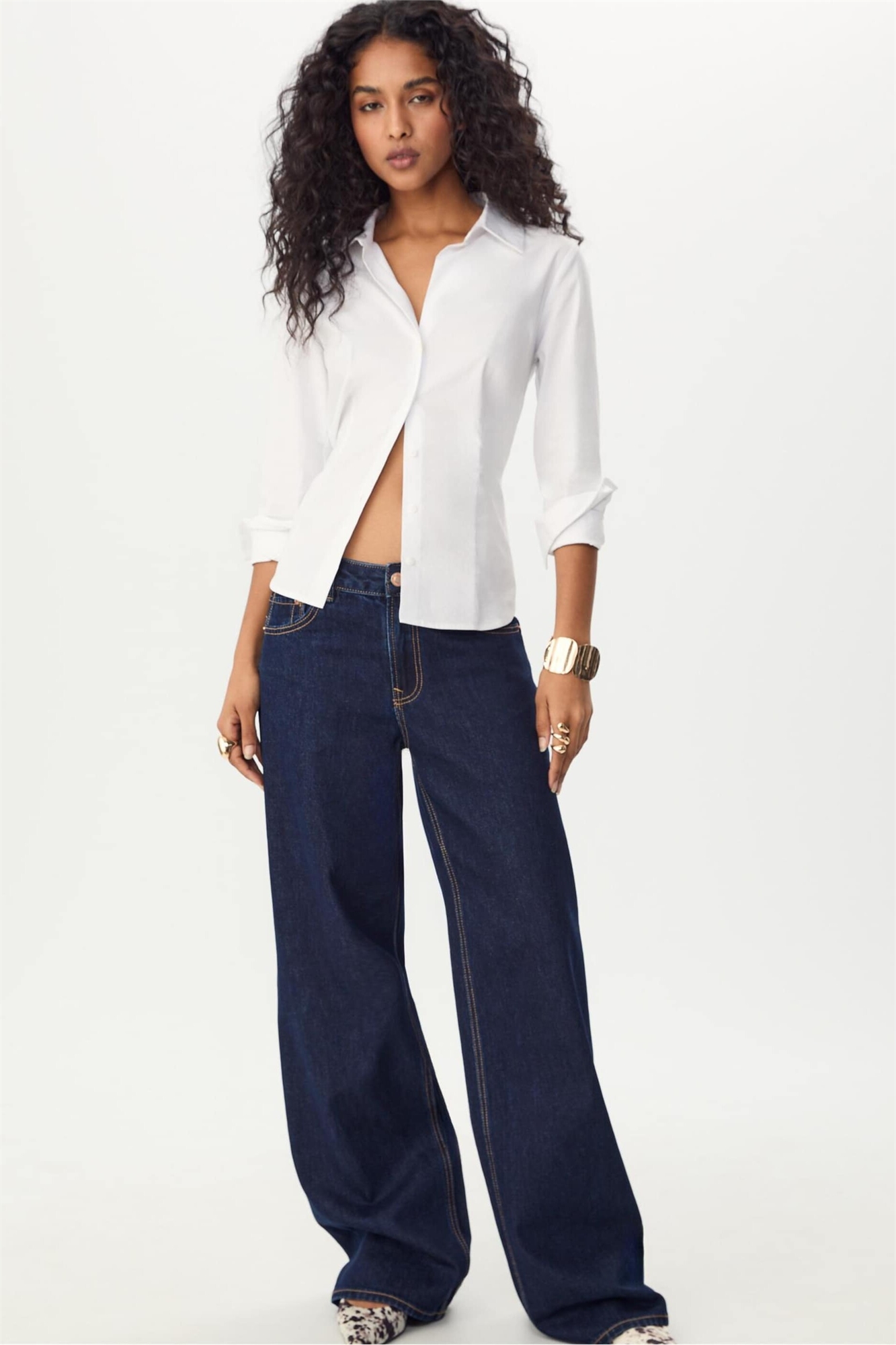Низкокачественные джинсы D91 с широкими брючинами из перекрашенного синего денима