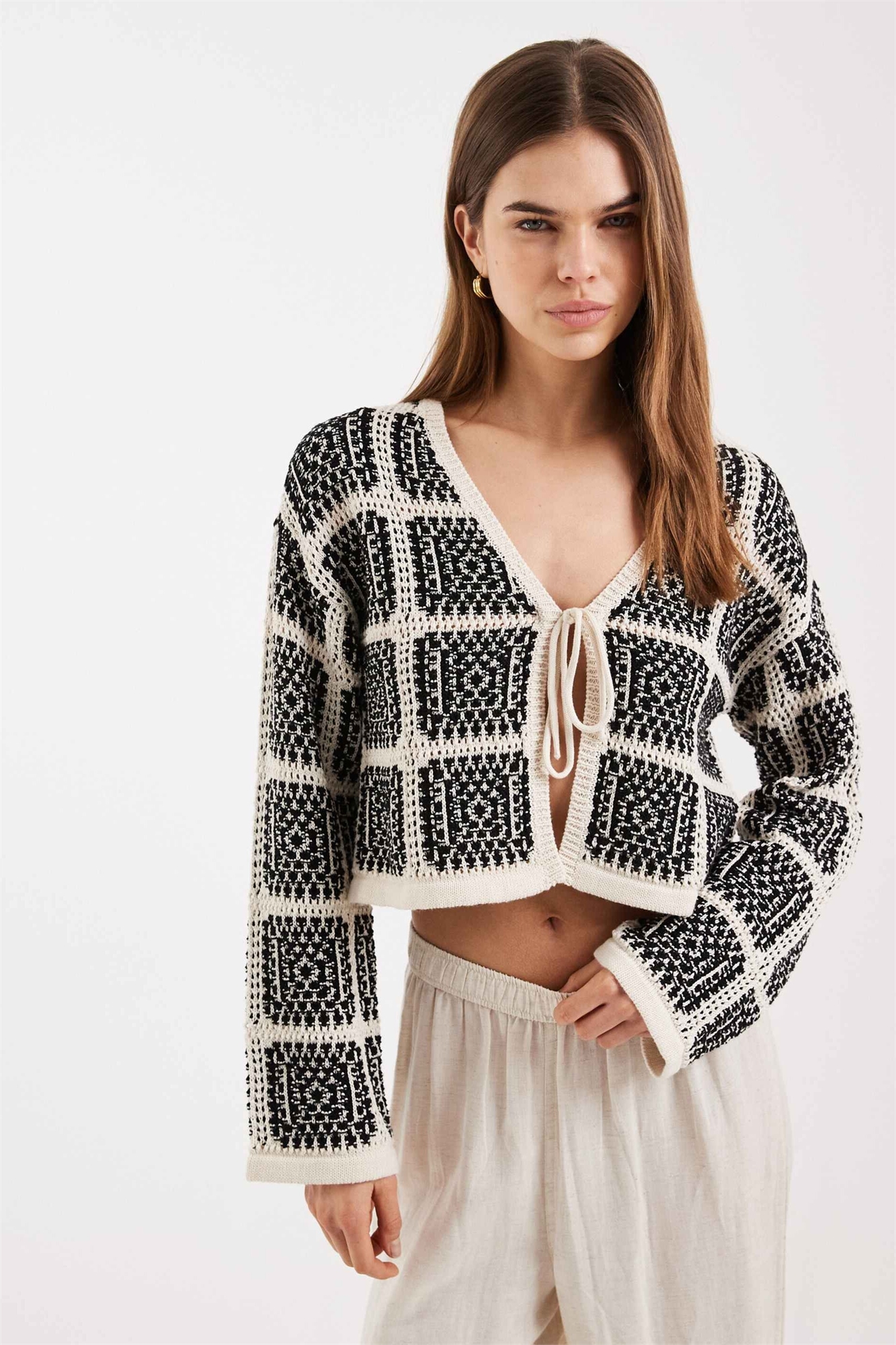 Кардиган с завязками спереди, связанный крючком