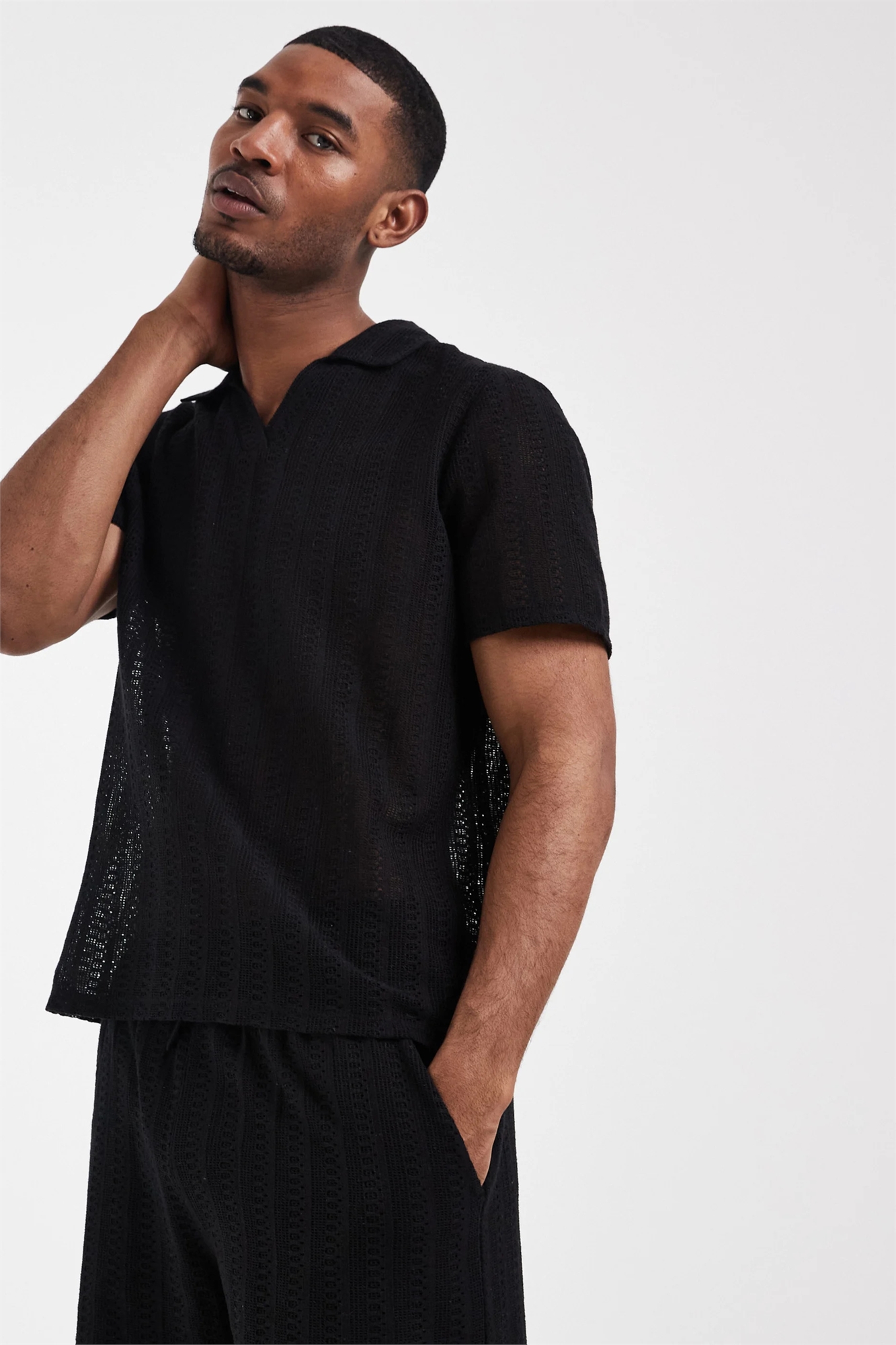 Вязаное крючком: ажурное, фактурное полотно с узором, имитирующим ручную работу. Основной состав: 66% полиэстер, 34% хлопок.