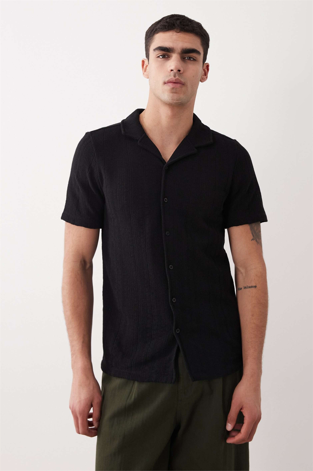 Рубашка из фактурного трикотажа с отложным воротником