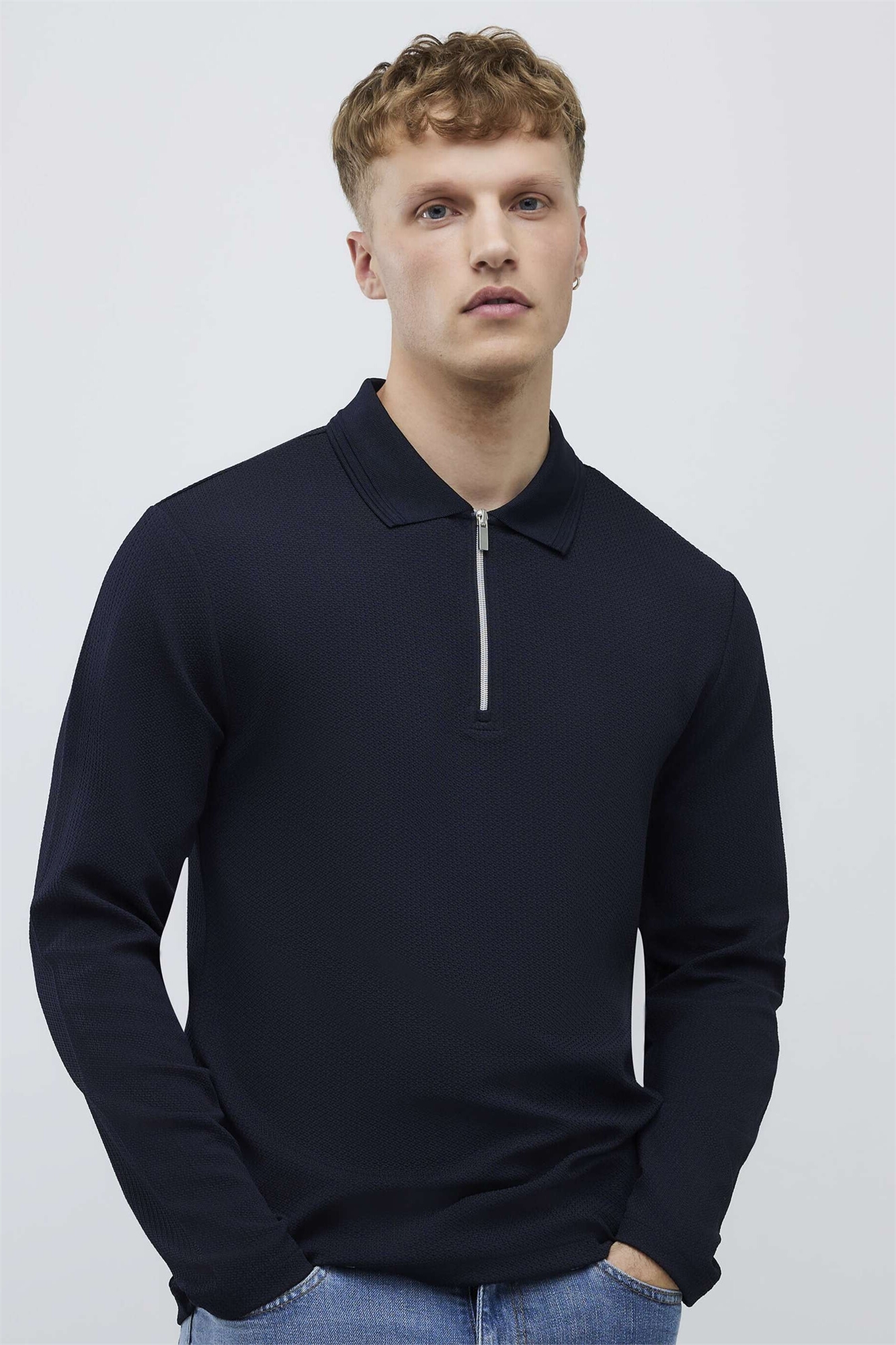 Полурубашка с застежкой-молнией на воротнике и фактурной текстурой, приталенного кроя