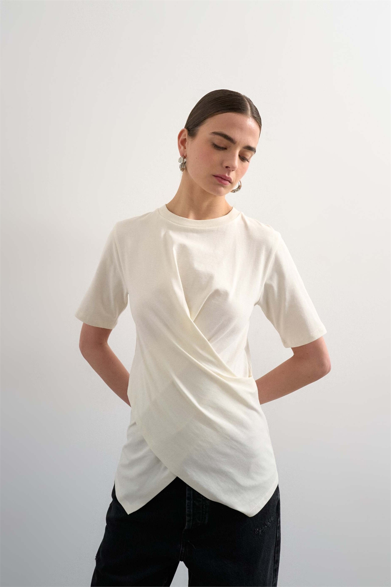 Топ с перекрещивающимся вырезом спереди и короткими рукавами