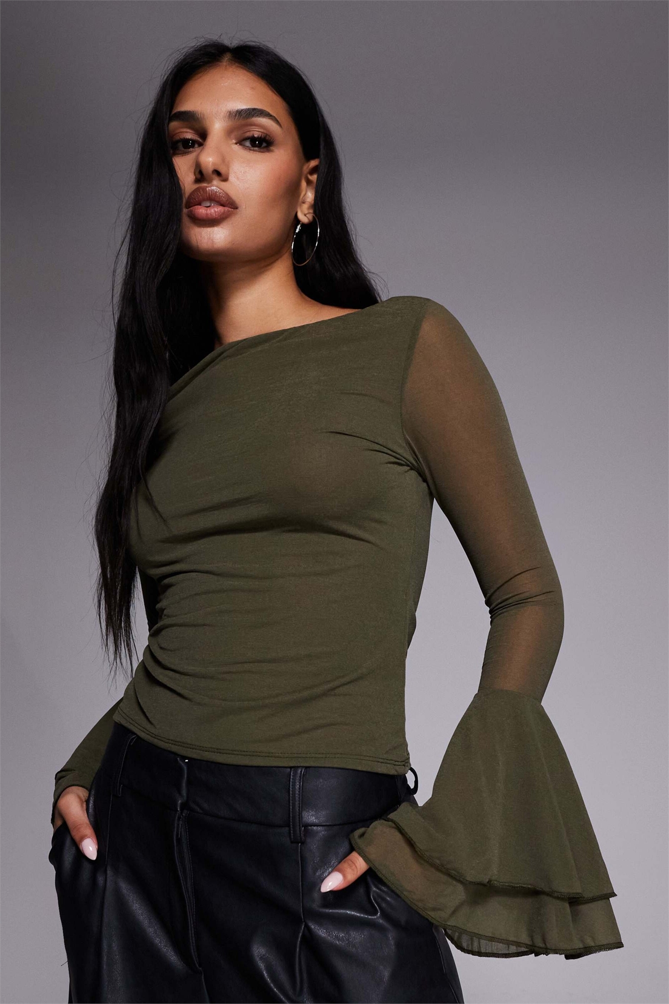 Топ с длинными рукавами из сетчатой ткани с расклешенными рукавами