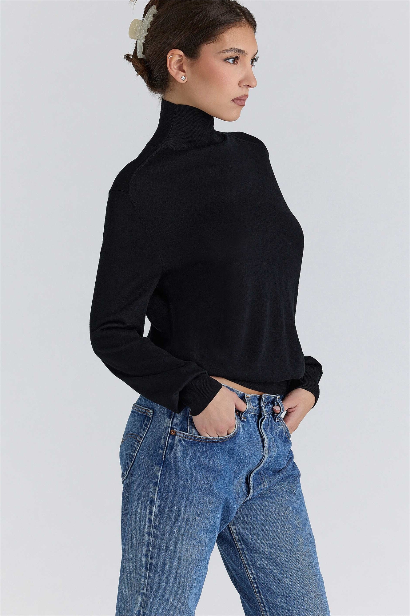 Свитер с высоким воротником из черного шелка и шерсти от Angel