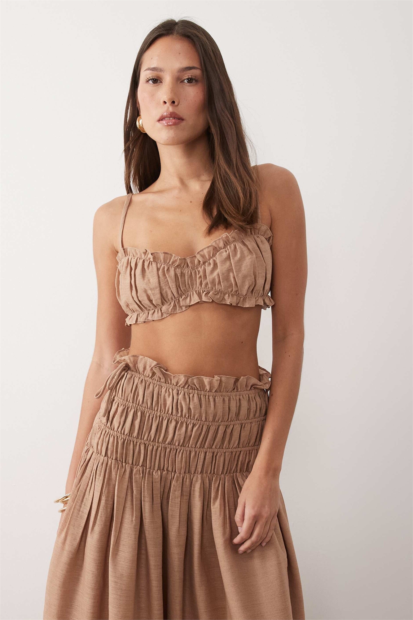 Короткий топ с завязками на спине и рюшами в стиле «льняной» от Soulie co-ord