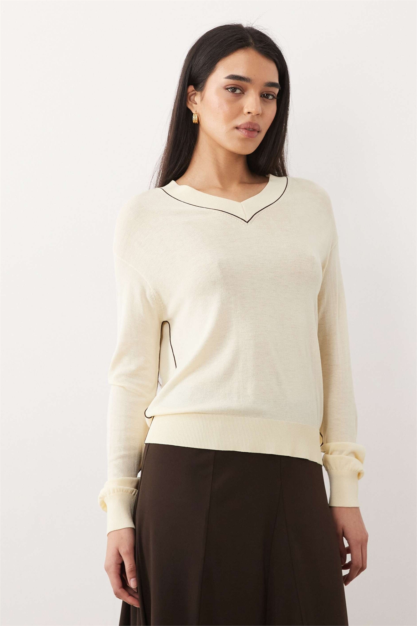 Легкий трикотажный свитер с V-образным вырезом