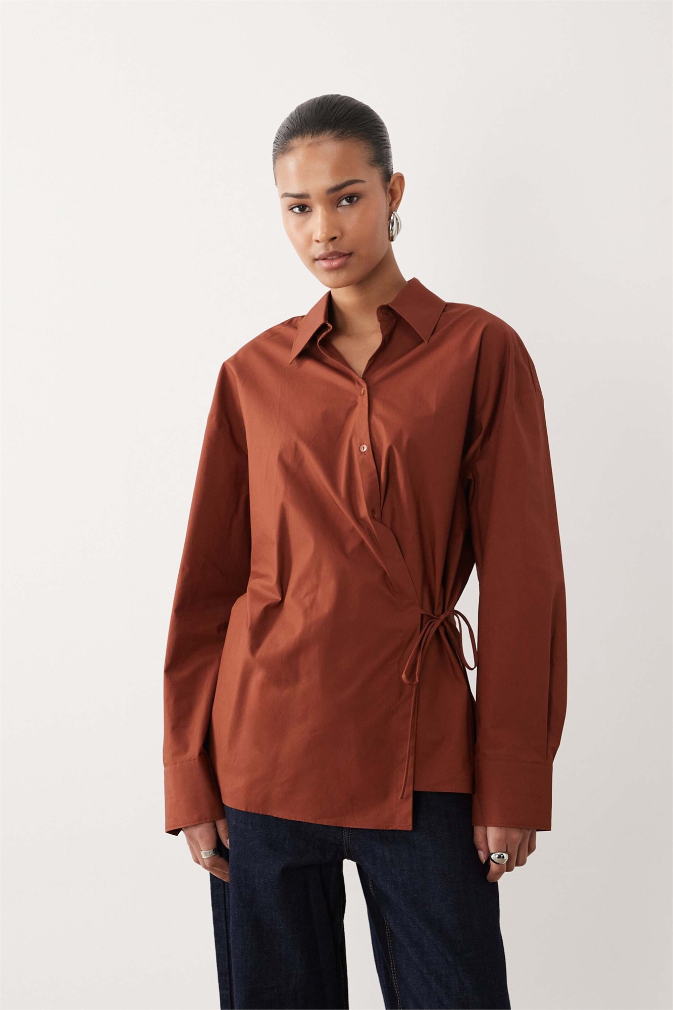 Рубашка свободного кроя с завязкой на талии из 100% хлопка